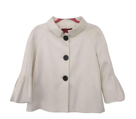 Το λευκό τζάκετ της είναι Burberry, και προς το παρόν πωλείται στο Vestiaire Collective, στην τιμή των 198,59 €.