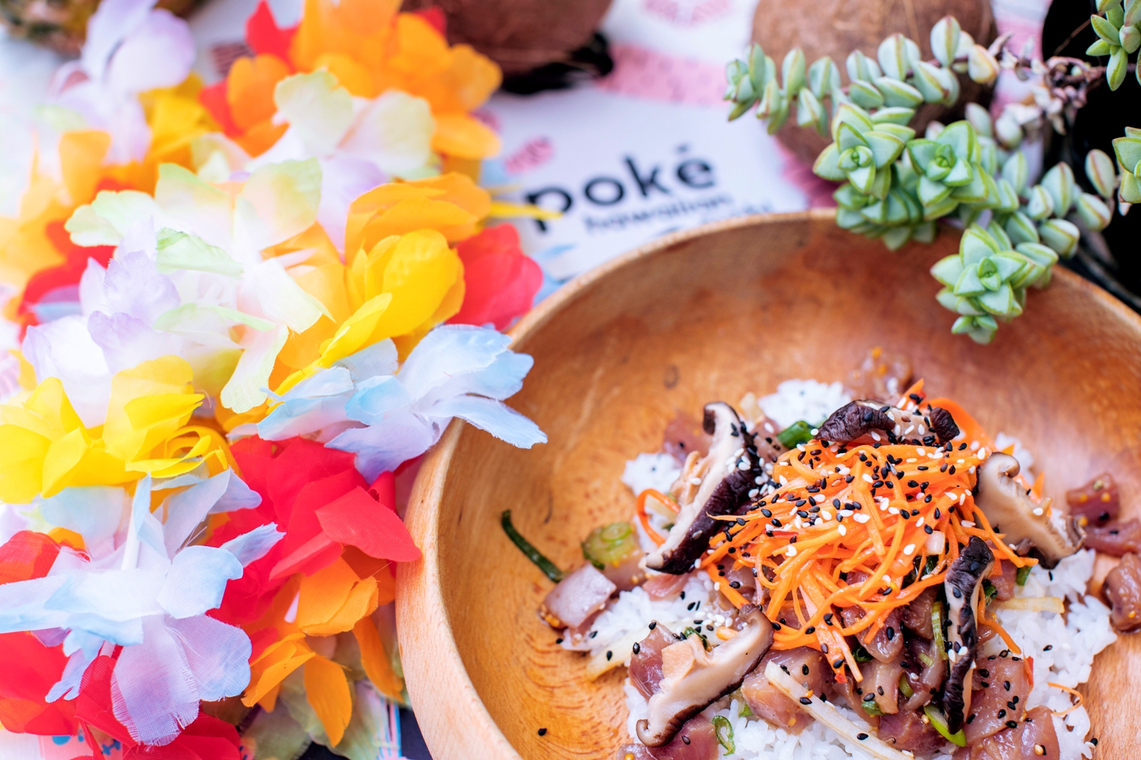 Poké στα χαβανέζικα σημαίνει το κόψιμο του ψαριού σε μπουκιές. Ερωτευτήκαμε αυτά τα μπολ με ρύζι και κύβους φρέσκου, μαριναρισμένου, ωμού ψαριού, γαρνιρισμένου με φρούτα, λαχανικά και σάλτσες. Τη funky έκδοση και αποδομημένη (χωρίς την αυστηρότητα της γιαπωνέζικης κουζίνας) του σούσι υπογράφουν τρεις φίλοι, οι Γιάννης Μπινιάρης, Γιάννης Κανδυλίδης και Κωνσταντίνος Γιαννούτας.