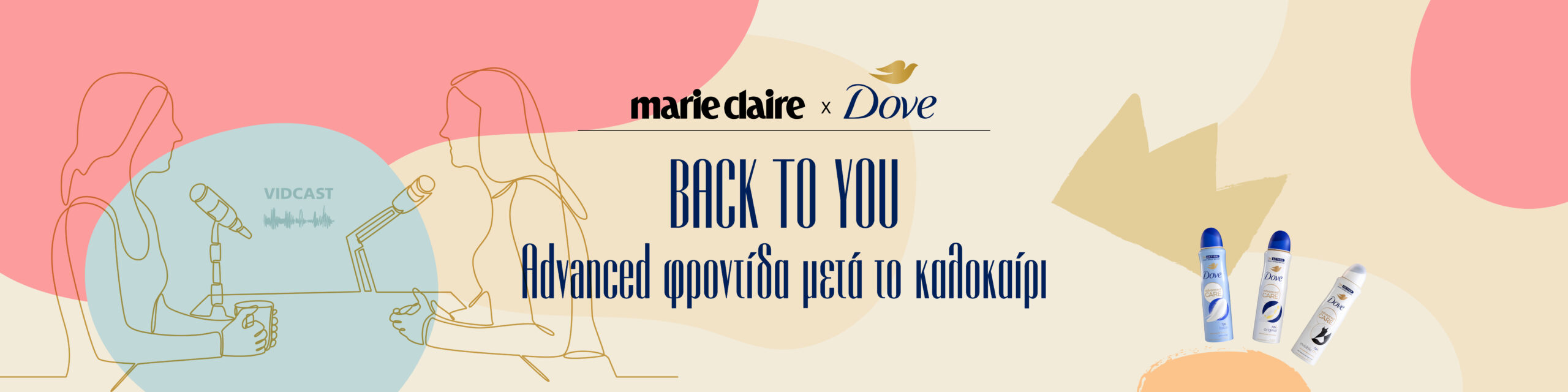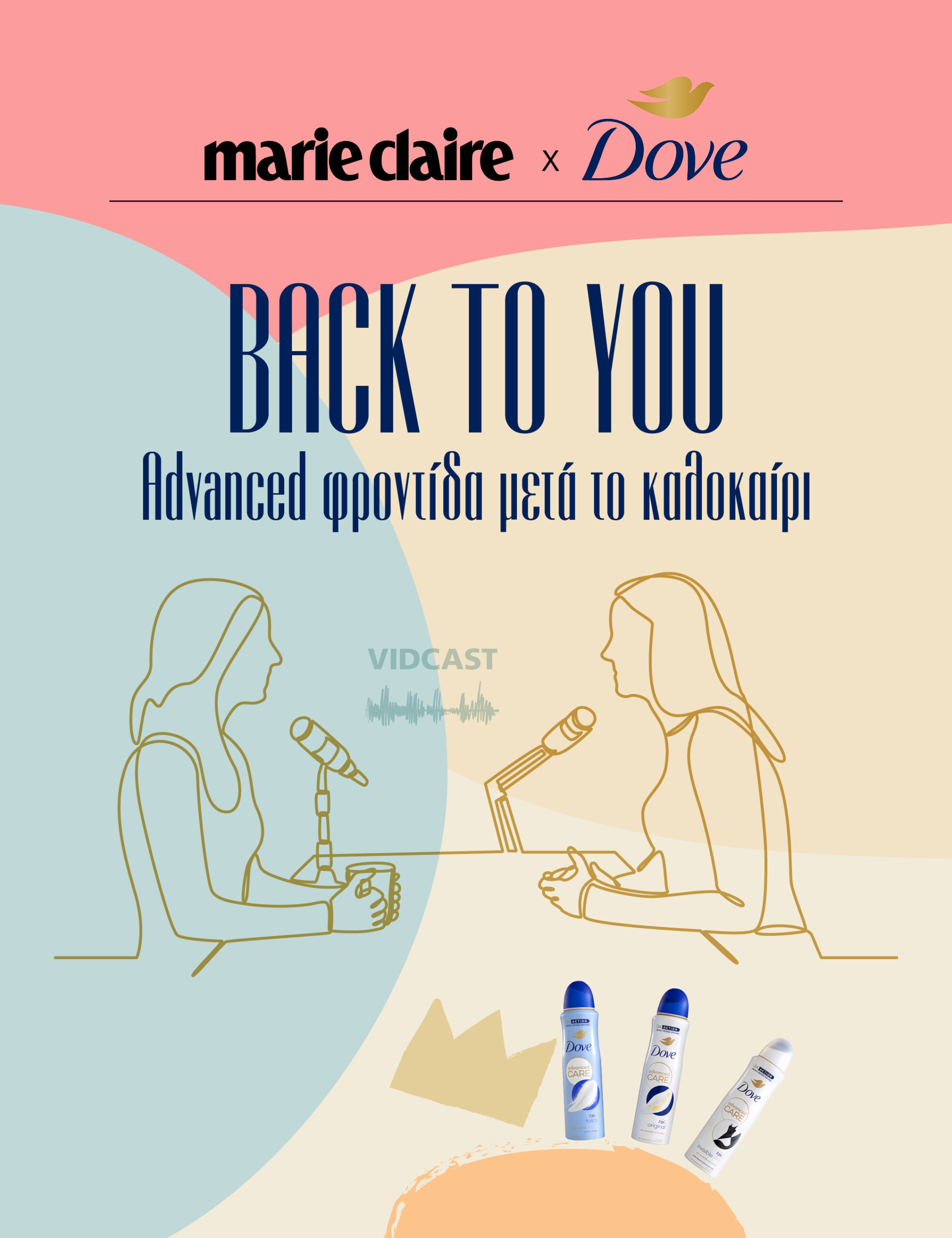 Στη νέα σειρά vidcast Back to You του Marie Claire σε συνεργασία με τη σειρά αποσμητικών Dove, ανακαλύπτουμε πώς η αυτοφροντίδα γίνεται η καλύτερη συνέχεια του καλοκαιριού και μια αφορμή να έρθουμε πιο κοντά στον εαυτό μας.