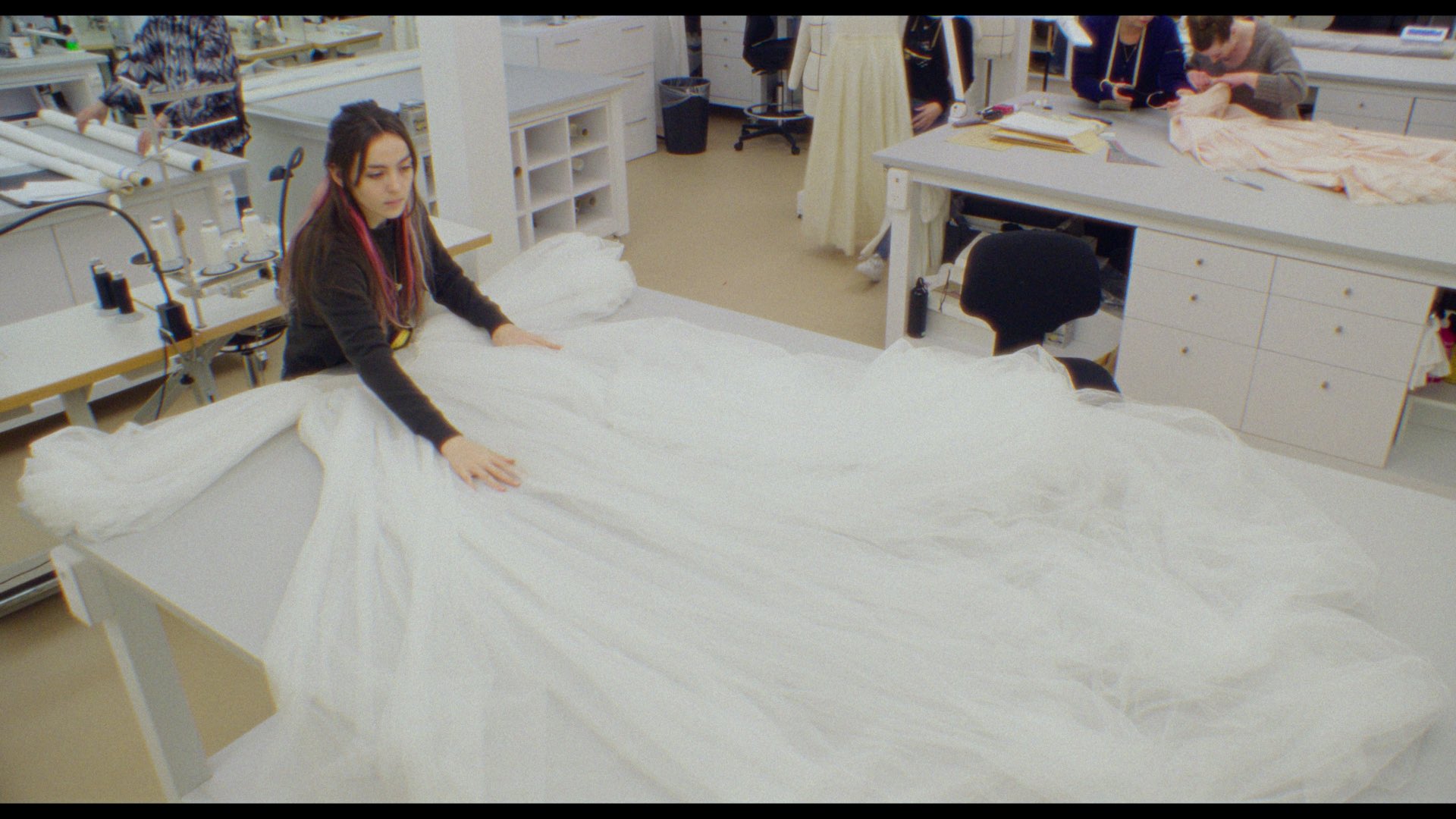 Ζήτησα τη στήριξη της Chanel από την αρχή της ταινίας, γιατί χρειαζόμουν τη βοήθειά τους για να έχω πρόσβαση στα παρασκήνια των επιδείξεων. Ήξερα επίσης ότι δεν θα μπορούσα να αναπαραστήσω μόνη μου έναν αληθινό οίκο υψηλής ραπτικής. Και δέχτηκαν να συνεργαστούν ουσιαστικά με την ταινία, δεν ήταν απλώς χρηματοδότες. Ήταν πραγματική συνεργασία. Δουλέψαμε και με το στούντιο, δημιουργήσαμε μια φανταστική κολεξιόν για την ταινία. Είχαμε, βέβαια, και πατρόν ή στοιχεία από άλλες κολεξιόν, τα οποία επεξεργαστήκαμε ξανά ώστε να αποκτήσουμε μια καλλιτεχνική ταυτότητα που να ανήκει πραγματικά στην ταινία. Και δέχτηκαν ακόμη και να σβήσουν όλα τα brands και τα λογότυπα από την ταινία, παρότι φυσικά αναγνωρίζει κανείς, για παράδειγμα, τη διάσημη σκάλα στα κεντρικά γραφεία του brand.