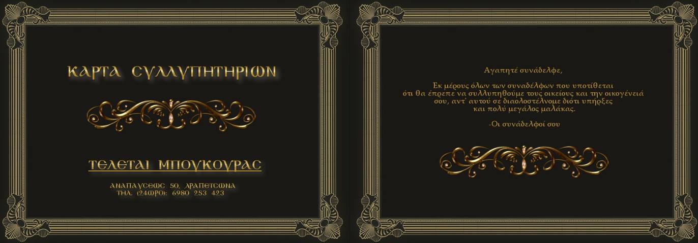 Αν ακόμη δεν έχει υποπέσει στην αντίληψή σας το γραφείο τελετών Μπούκουρας, τότε αυτή είναι μια καλή ευκαιρία να το γνωρίσετε. Άλλωστε, αυτή, είναι η μόνη επιχείρηση που όλοι ανεξαιρέτως θα επισκεφθούμε κάποια στιγμή στη ζωή μας, ζωντανοί ή νεκροί.