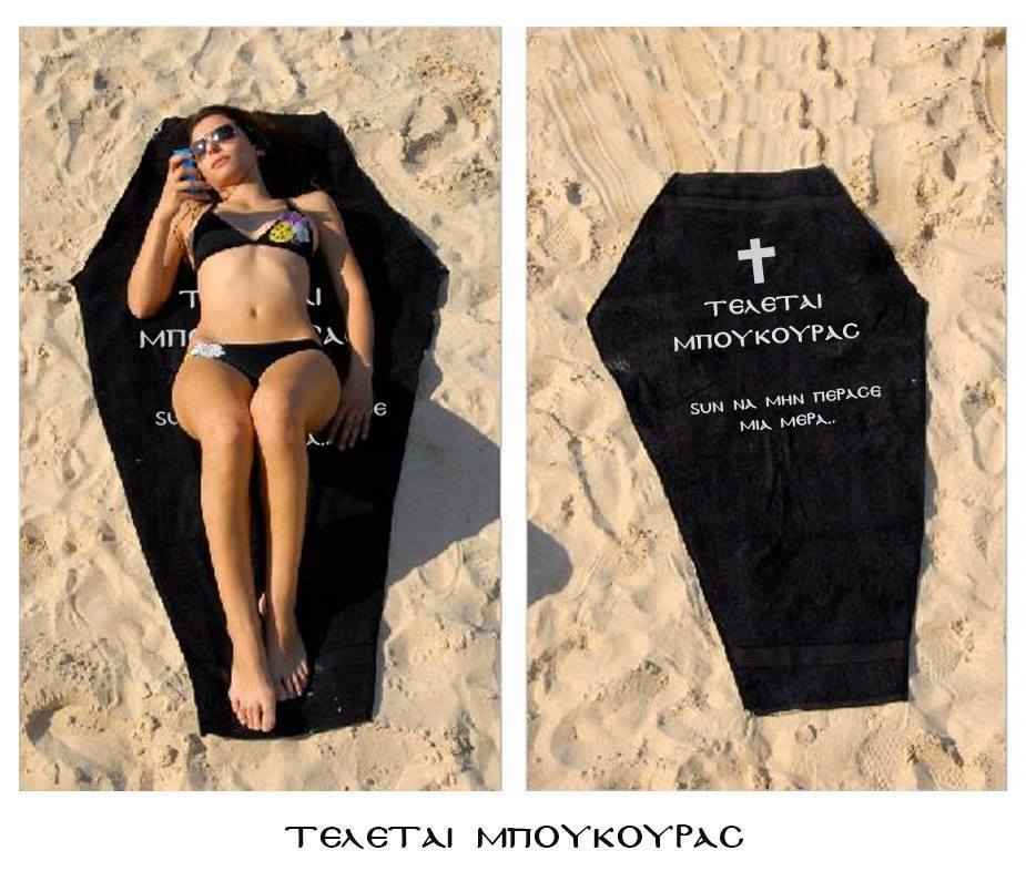 Kατά καιρούς λανσάρεις προϊόντα που διαφημίζουν το γραφείο κηδειών σας όπως πετσέτες θαλάσσης σε σχήμα φέρετρου. Πως τα εμπνέεσαι και πως αντιδρά ο κόσμος όταν τα βλέπει; Υπάρχουν στ αλήθεια άνθρωποι που ξαπλώνουν στην παραλία πάνω σε μια τέτοια πετσέτα;
