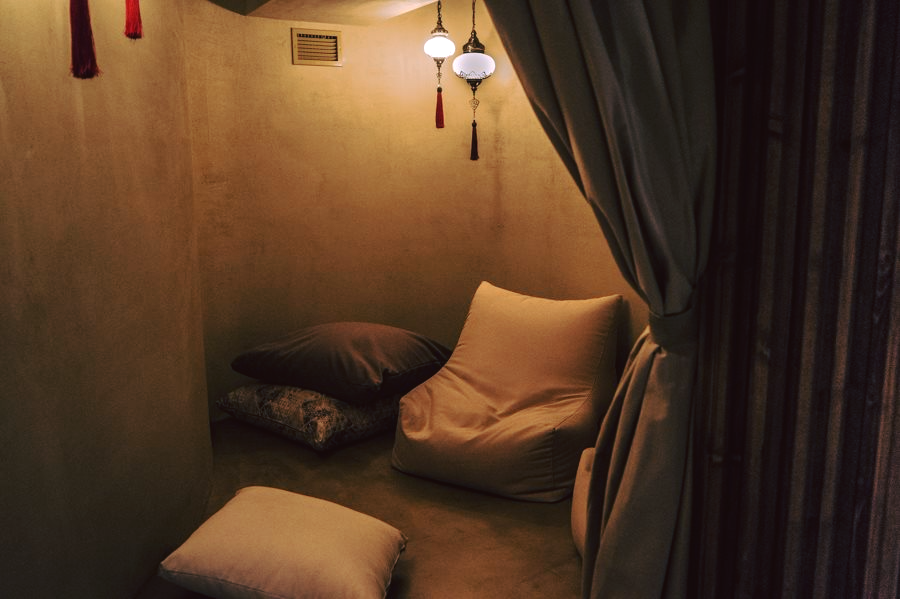 Στο τέλος της διαδικασίας ο θεραπευτής αναλαμβάνει την περιποίηση και το στέγνωμα με τις πετσέτες και τέλος χαλαρώσαμε σε μια ιδιωτική σουίτα με μαλακά πουφ, μας προσέφεραν μαύρο τσάι και λουκούμι και ξαπλώσαμε αναπαυτικά μέχρι να ηρεμήσουμε και να οδηγηθούμε στον κάτω όροφο για τη θεραπεία του μασάζ.
