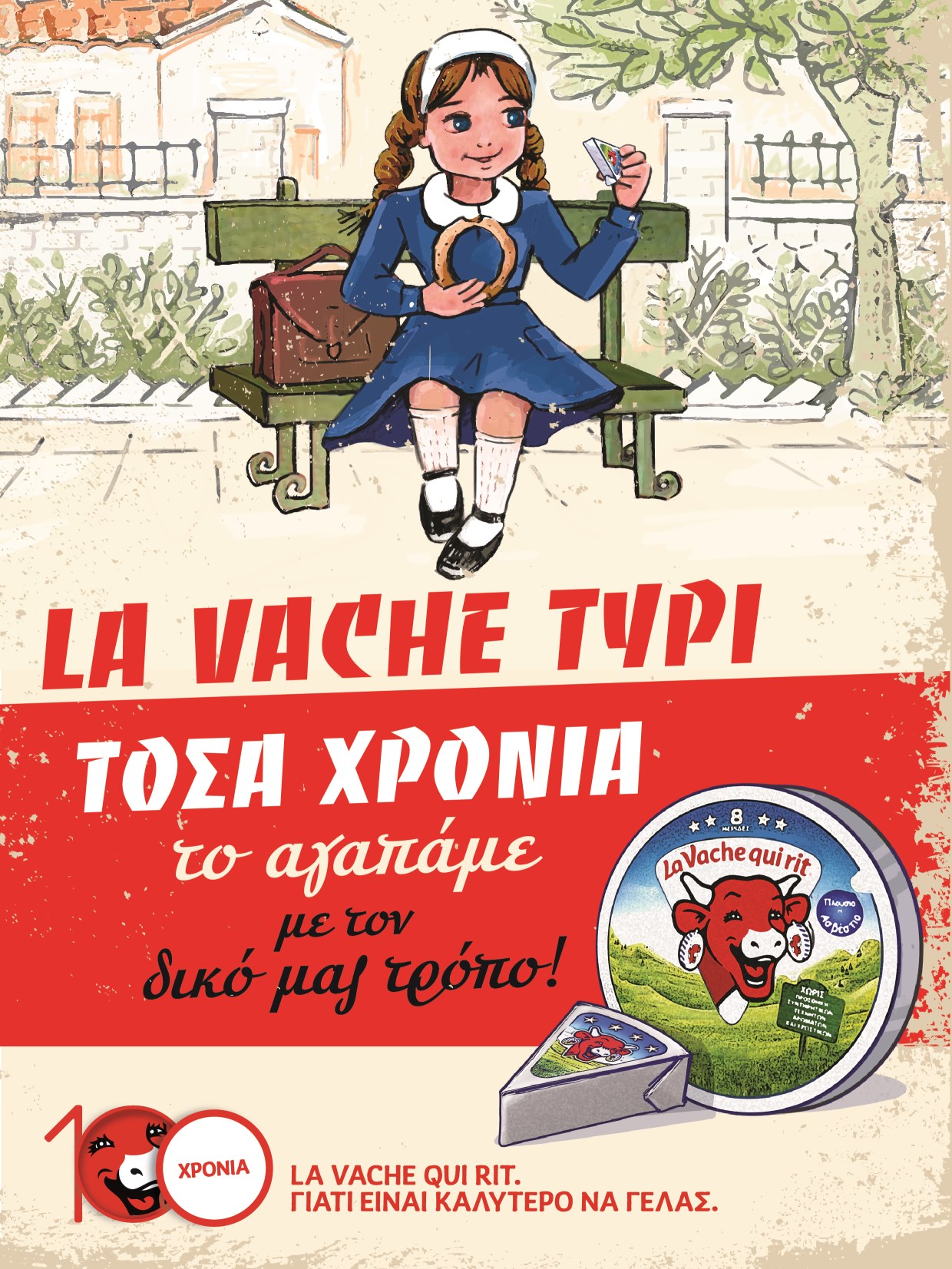 Κι επειδή το αγαπήσαμε με τον δικό μας τρόπο, αλλά ήταν λίγο δύσκολο να το προφέρουμε, του δώσαμε κι ένα πιο «δικό μας», ελληνικό όνομα. Έτσι, το La Vache Qui Rit®, η Αγελαδίτσα που Γελάει, έγινε La Vache Τυρί και πήρε την καλύτερη θέση στην καρδιά μας – κάθε μέρα, όλη μέρα! Κι εκείνο, με αφορμή τη γιορτή για τα 100 χρόνια του, ανταποδίδει την αγάπη μας, μετατρέποντας το γέλιο σε προσφορά χαράς!
