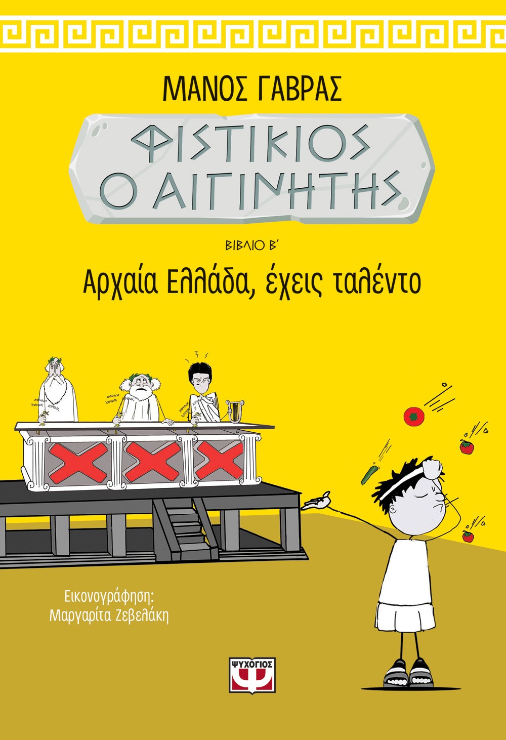 Ο Φιστίκιος ο Αιγινήτης θέλει να εντυπωσιάσει την Αφροδίτη, την ωραία του σχολείου, και για χάρη της κάνει διάφορες παλαβομάρες, από το να τα βάλει με τον Μινώταυρο μέχρι να τρέεξει στους Ολυμπιακούς Αγώνες ή να πάει να κατακτήσει την Τροία. Διασκεδαστική προσέγγιση της ελληνικής μυθολογίας για παιδιά με φαντασία που οργιάζει. Από τον γνωστό ηθοποιό Μάνο Γαβρά, σε εικονογράφηση Μαργαρίτας Ζεβελάκη, εκδ. Ψυχογιός.