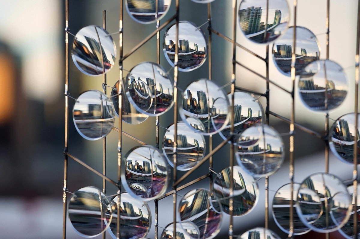 Το έργο αποτελείται από στρώματα οπτικών μυωπικών φακών, τα οποία σχηματίζουν δύο τοξωτά «πανιά» από φως. Καλεί τον θεατή να περιηγηθεί στον χώρο που δημιουργείται και να παρατηρήσει το περιβάλλον μέσα από αυτούς. Από το εσωτερικό της εγκατάστασης, οι φακοί εστιάζουν σε μακρινές εικόνες, σε θολωτούς μικρόκοσμους που μετατοπίζονται με τον άνεμο. Έξω, το σώμα κάθε θεατή φαίνεται σαν ψηφιδωτό, σαν ένα φάντασμα που γίνεται μέρος ενός διαφορετικού τρόπου θέασης.