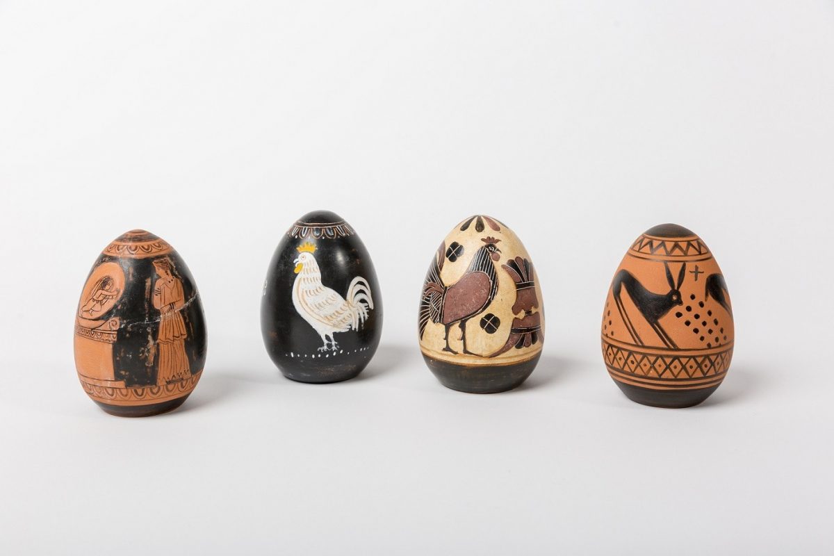 Παιχνίδια, κοσμήματα και κεραμικές δημιουργίες με σύμβολα και απεικονίσεις μυθολογικών θεμάτων που διακοσμούν αρχαία ελληνικά αγγεία.