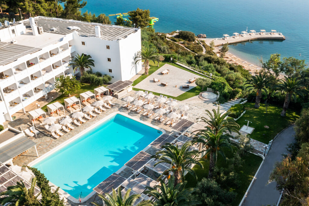 Δίπλα από την πόλη της Χαλκίδας, το resort είναι ένας προορισμός που συνδυάζει την άνεση και τη χαλάρωση με την υψηλή αισθητική, την οποία επιμελήθηκε το αρχιτεκτονικό γραφείο Urban Soul Project. Από την πρώτη στιγμή που ο επισκέπτης θα φτάσει στη ρεσεψιόν και θα δοκιμάσει το αρωματισμένο με φρούτα νερό, μέχρι τη στιγμή που θα κατέβει σε μια από τις δυο αμμώδεις παραλίες του, το resort θα συνεχίσει να τον σαγηνεύει μέσα από το ντεκόρ, τις αιωρούμενες πολυθρόνες – φωλιές και την υψηλού επιπέδου εξυπηρέτηση που προσφέρει. Τα άνετα, μοντέρνα δωμάτιά του διαθέτουν αιώρες, από τις οποίες ο επισκέπτης μπορεί να απολαύσει τη θέα στη θάλασσα, αλλά και στον καταπράσινο κήπο.