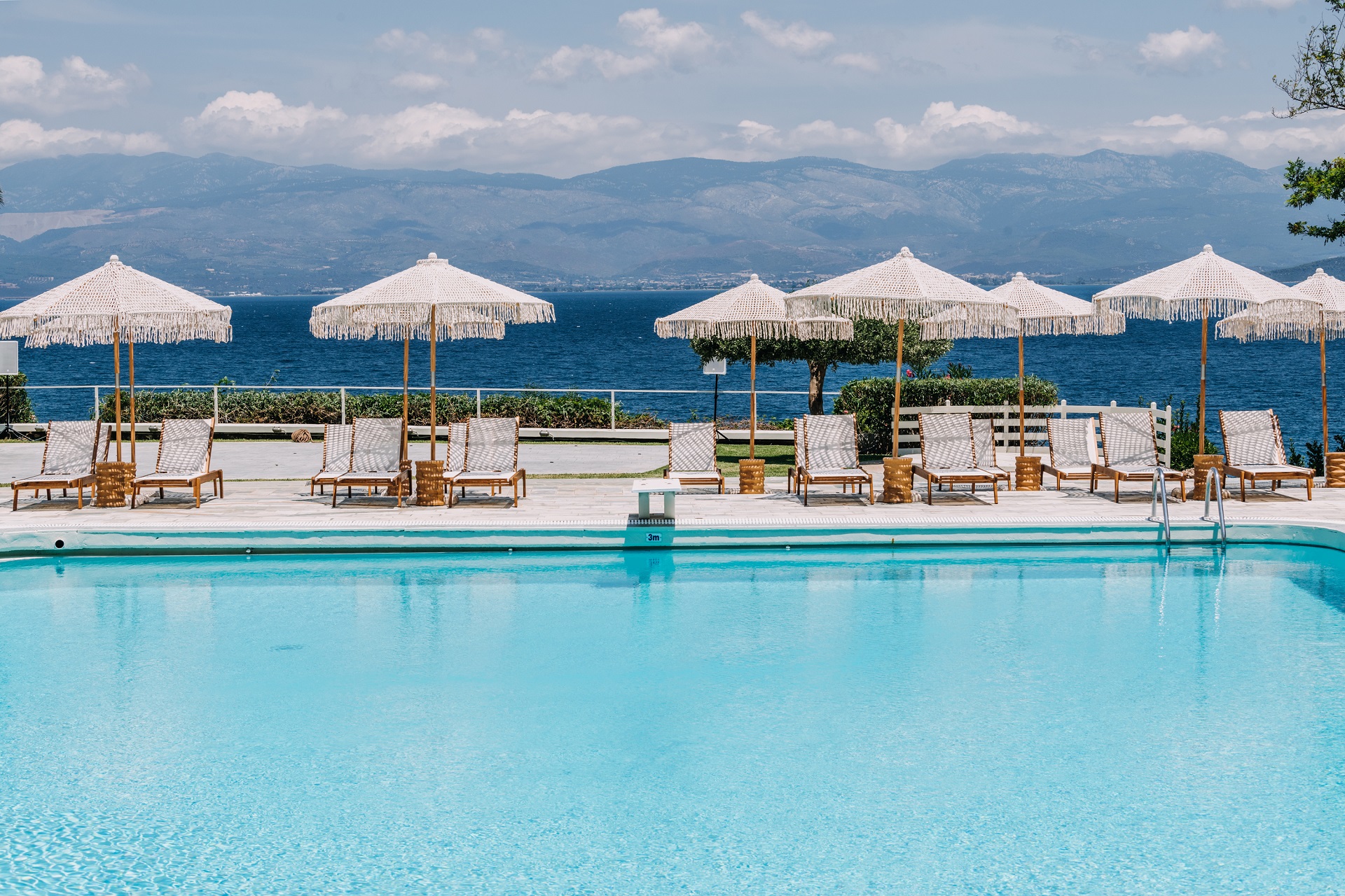 Η μεγάλη πισίνα του ξενοδοχείου, κάτω από το ευρύχωρο και φωτεινό εστιατόριο, προσφέρεται για απολαυστικές βουτιές με άνεση και θέα τη θάλασσα. Το poolbar σερβίρει όλη την ημέρα σνακς, καφέ, αναψυκτικά και κοκτέιλς που ο επισκέπτης μπορεί να απολαύσει τόσο στις άνετες ξαπλώστρες και τα πουφ γύρω από την πισίνα, όσο και στις δυο παραλίες.