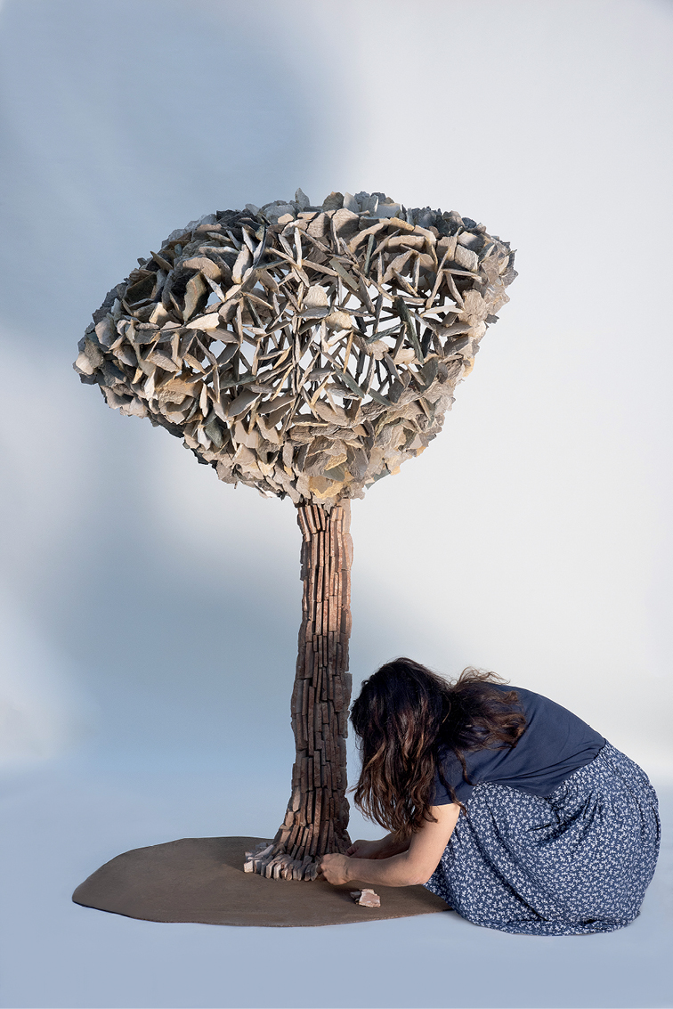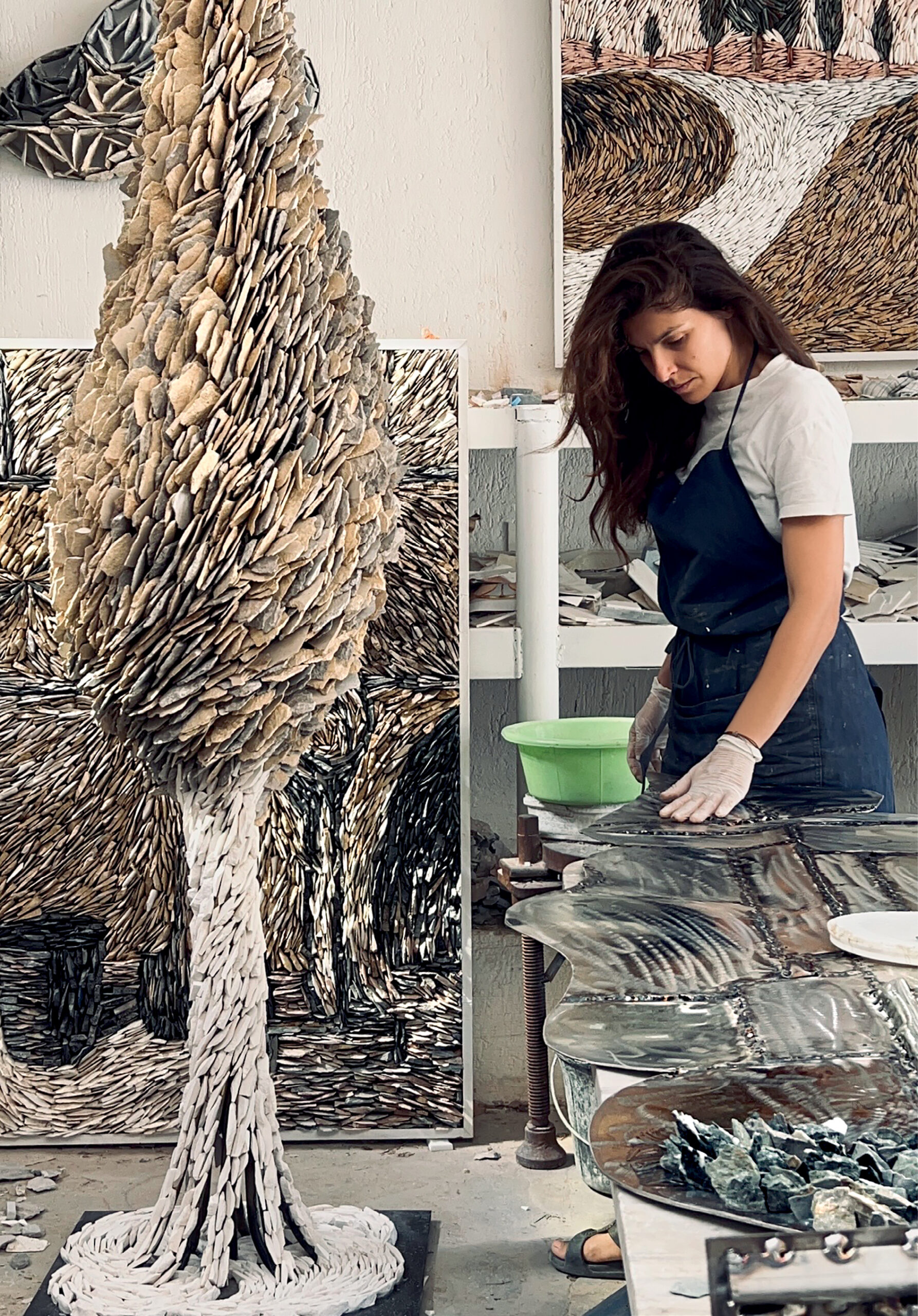Μέσα από την τέχνη της, η δημιουργός ανακάλυψε πτυχές του εαυτού της. «Συνειδητοποίησα ότι είμαι ένας άνθρωπος που έχει ανάγκη την κίνηση, η στασιμότητα με κουράζει», ομολογεί. Αυτή η ανάγκη έγινε η κινητήριος δύναμη της δουλειάς της. Παρόλο που ξεκίνησε από το κλασικό ψηφιδωτό, το οποίο θαυμάζει στα αρχαιολογικά μνημεία, ένιωσε ότι η παραδοσιακή του μορφή ήταν υπερβολικά στατική/ακίνητη για τα δικά της ζητούμενα. Αναζητώντας την ένταση και τη ζωντάνια, οδηγήθηκε στο θραύσμα. Η επιλογή της να τοποθετεί τα κομμάτια μαρμάρου κάθετα στην επιφάνεια δημιούργησε μια νέα εικαστική γλώσσα, ικανή να αποδώσει την αίσθηση της ροής. Αυτή η συνεχής μετακίνηση και η έλλειψη σταθερών σημείων αναφοράς είναι, κατά την ίδια, το στοιχείο που την εξέλιξε καλλιτεχνικά.