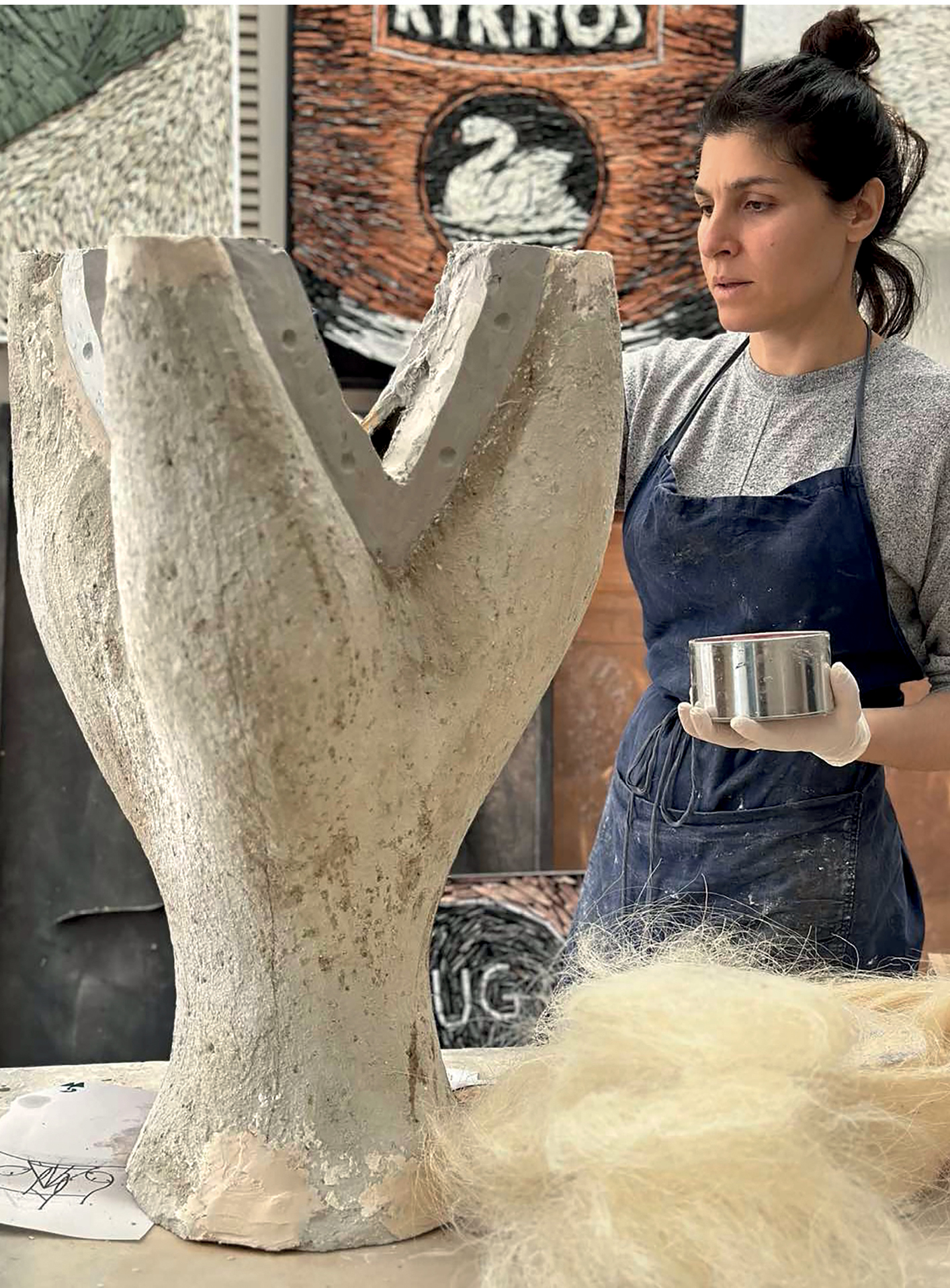 Η σχέση της με τη δημιουργία ξεκίνησε μέσα από τη βιωματική επαφή με τη χειρωνακτική εργασία στο καλλιτεχνικό χυτήριο ΤΕΠ. Ο οικογενειακός αυτός χώρος υπήρξε το πρώτο της σχολείο, προσφέροντάς της τα τεχνικά εφόδια που αργότερα έγιναν τα βασικά εργαλεία έκφρασής της. «Από μικρή ηλικία ήρθα σε επαφή με την υλικότητα και τη χειρωνακτική εργασία, στοιχεία που διαμόρφωσαν τον τρόπο με τον οποίο προσεγγίζω τη δημιουργία», εξηγεί η ίδια. Η εμπειρία αυτή υπήρξε καθοριστική, καθώς της επέτρεψε να κατανοήσει ότι η φαντασία, όσο ισχυρή κι αν είναι, χρειάζεται την τεχνική γνώση για να αποκτήσει υπόσταση.