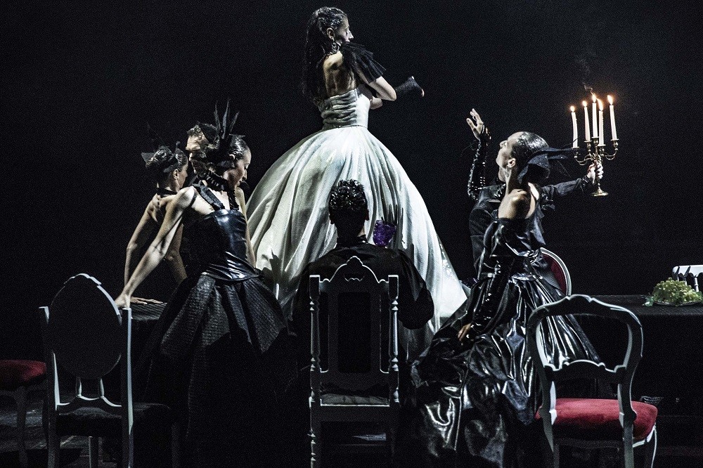 Η Τραβιάτα, παρουσιασμένη στον ιστορικό χώρο του Ηρωδείου, εντάσσεται σε μια απαιτητική όσο και ενδιαφέρουσα συνθήκη: πρέπει κανείς να βρει την ισορροπία μεταξύ των σκηνών της επιδεικτικής ευδαιμονίας και των στιγμών της ιδιωτικότητας. Οι τοίχοι του αρχαίου Ωδείου είναι εγγυητές της διαχρονίας και εντάσσουν υποχρεωτικά την αφήγηση στον μεγάλο χρόνο. Στον ενδιάμεσο αυτό χώρο, μεταξύ παρελθόντος και μέλλοντος, η Βιολέττα μοιάζει σταματημένη σε μια εποχή μετέωρη, προσφέροντας στον θεατή την ιστορία της, προϊόν κι αυτή προς κατανάλωση, όπως ήταν και η ίδια.