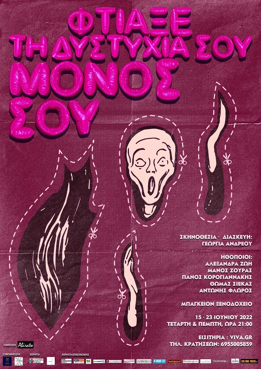 Αν αισθάνεστε να σας έχουν κουράσει οι συμβουλές της λεγόμενης θετικής ψυχολογίας, που έχουν κυριεύσει τον κόσμο, από τη διεθνή βιβλιογραφία μέχρι τα φλιτζάνια του πρωινού καφέ, δεν πρέπει να χάσετε την κωμωδία «Φτιάξε τη δυστυχία σου μόνος σου», που έρχεται στο Μπάγκειον Ξενοδοχείο για μόνο τέσσερις παραστάσεις (15 – 23 Ιουνίου 2022, Τετάρτη-Πέμπτη, 9:00 μ.μ.). Εμπνευσμένη από το ομώνυμο βιβλίο του Πωλ Βατζλάβικ, σε διασκευή-σκηνοθεσία της Γεωργίας Ανδρέου, υπόσχεται μια αντισυμβατική θεατρική εμπειρία γεμάτη λυτρωτικό χιούμορ, αντίδοτο στην ασφυκτική πίεση που δεχόμαστε να είμαστε διαρκώς ευτυχισμένοι.