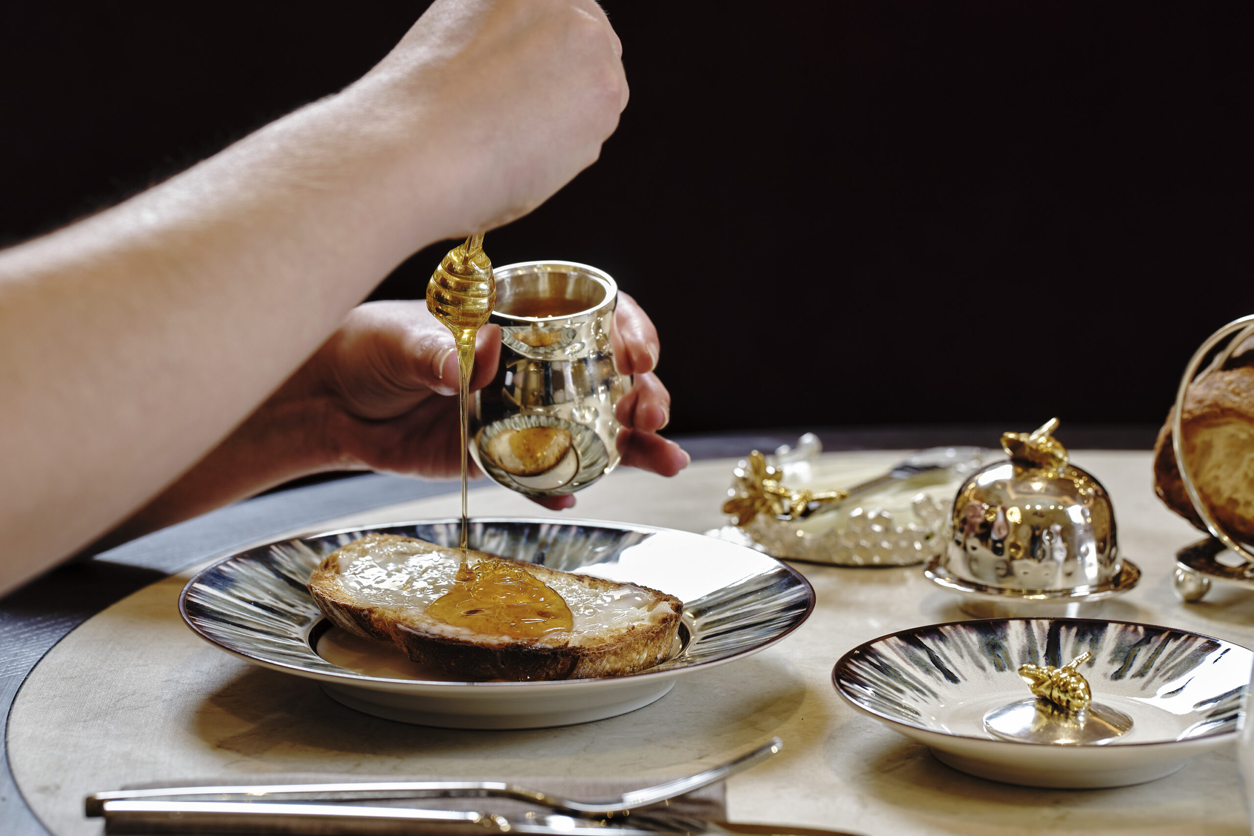 Καθίσαμε σε ένα από τα πιο φωτεινά τραπέζια και ξεκινήσαμε με ζεστό καφέ. Η μυρωδιά του φρεσκοψημένου ψωμιού έρχεται κατευθείαν από το αρτοποιείο του ξενοδοχείου. Το μενού, επιμελημένο από τους βραβευμένους με αστέρι Michelin Αστέριο Κουστούδη και Νίκο Λειβαδιά, είναι απλό, ευφυές και γεμάτο χαρακτήρα. Ψωμί, βούτυρο και μέλι – μια παιδική ανάμνηση σε τέλεια εκτέλεση, με μέλι από τα «υιοθετημένα» μελίσσια του ξενοδοχείου στην Κερκίνη και βούτυρο από τη Δεσκάτη. Μικρές λεπτομέρειες που κάνουν τη διαφορά και αποκαλύπτουν τη φιλοσοφία της ομάδας: αυθεντικότητα, βιωσιμότητα, σεβασμός στα ελληνικά προϊόντα.