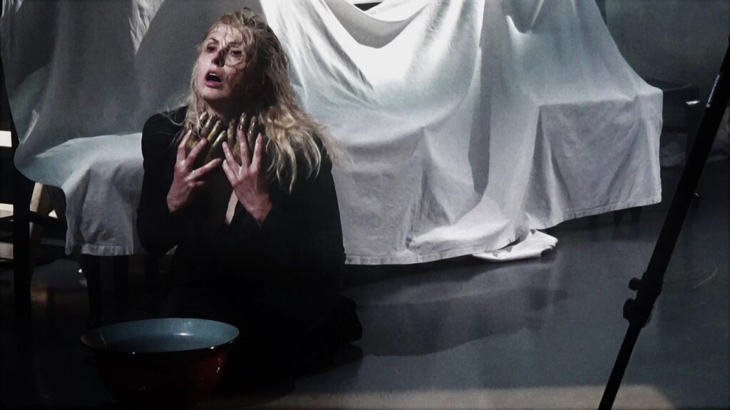 Κείμενο αιρετικό και αλληγορικό τοποθετείται στο κέντρο μίας βίαιης πραγματικότητας που συνδιαλέγεται με το παρελθόν και το μέλλον της Ιστορίας. Σε αυτό το σύμπαν της σύγχρονης Κόλασης, που αποτυπώνεται σκηνικά σ’ ένα ηχητικό και εικαστικό περιβάλλον σαν ένα σύγχρονο χορικό, το σώμα της Γυναίκας στοιχειώνεται μέσα από μια γεωγραφία εικόνων που συνθέτουν το προσωπείο της γυναίκας δαίμονα μέσα στους αιώνες.