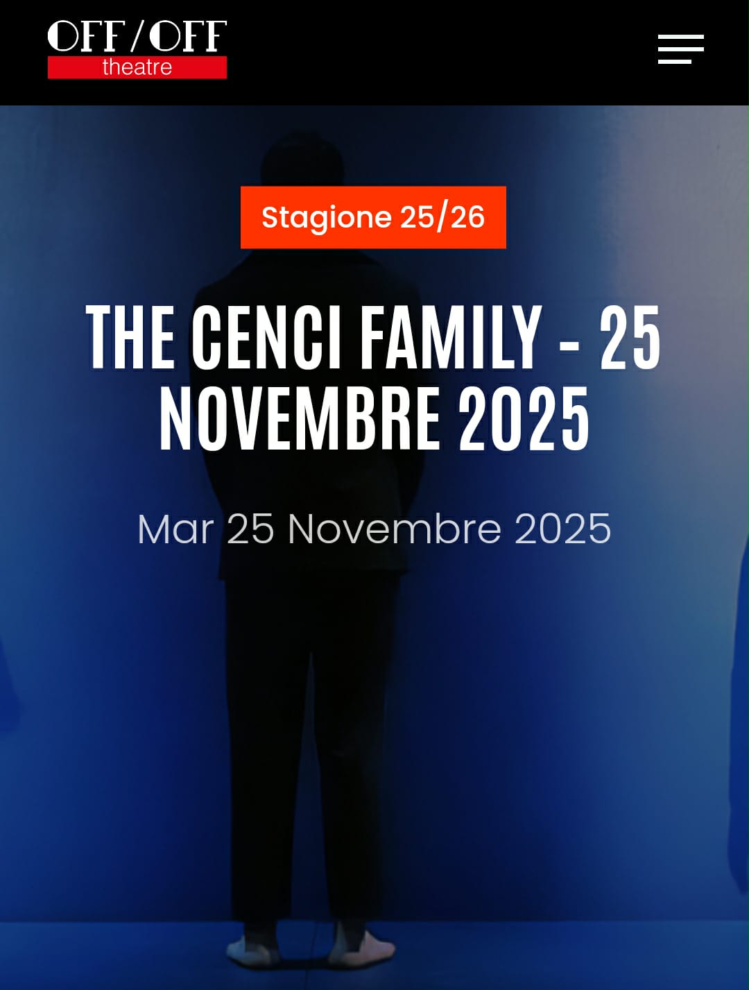 Για πρώτη φορά ελληνικό θεατρικό έργο εντάσσεται στο ρεπερτόριο του ιστορικού ιταλικού θεάτρου OFF/OFF THEATRE, στο κέντρο της Ρώμης. Η παράσταση «Οικογένεια Τσέντσι» της Ιόλης Ανδρεάδη, μετά τις επιτυχημένες εμφανίσεις σε Νέα Υόρκη και Φιλιππούπολη, παρουσιάζεται στις 25 Νοεμβρίου, ανήμερα της Παγκόσμιας Ημέρας για την Εξάλειψη της Βίας κατά των Γυναικών, αναβιώνοντας την ιστορία της Βεατρίκης Τσέντσι, της νεαρής γυναίκας που αντιστάθηκε στην πατριαρχία και πλήρωσε με τη ζωή της.