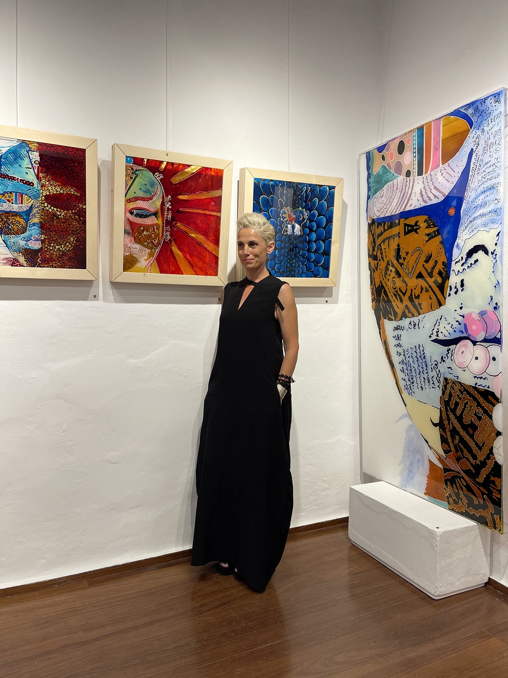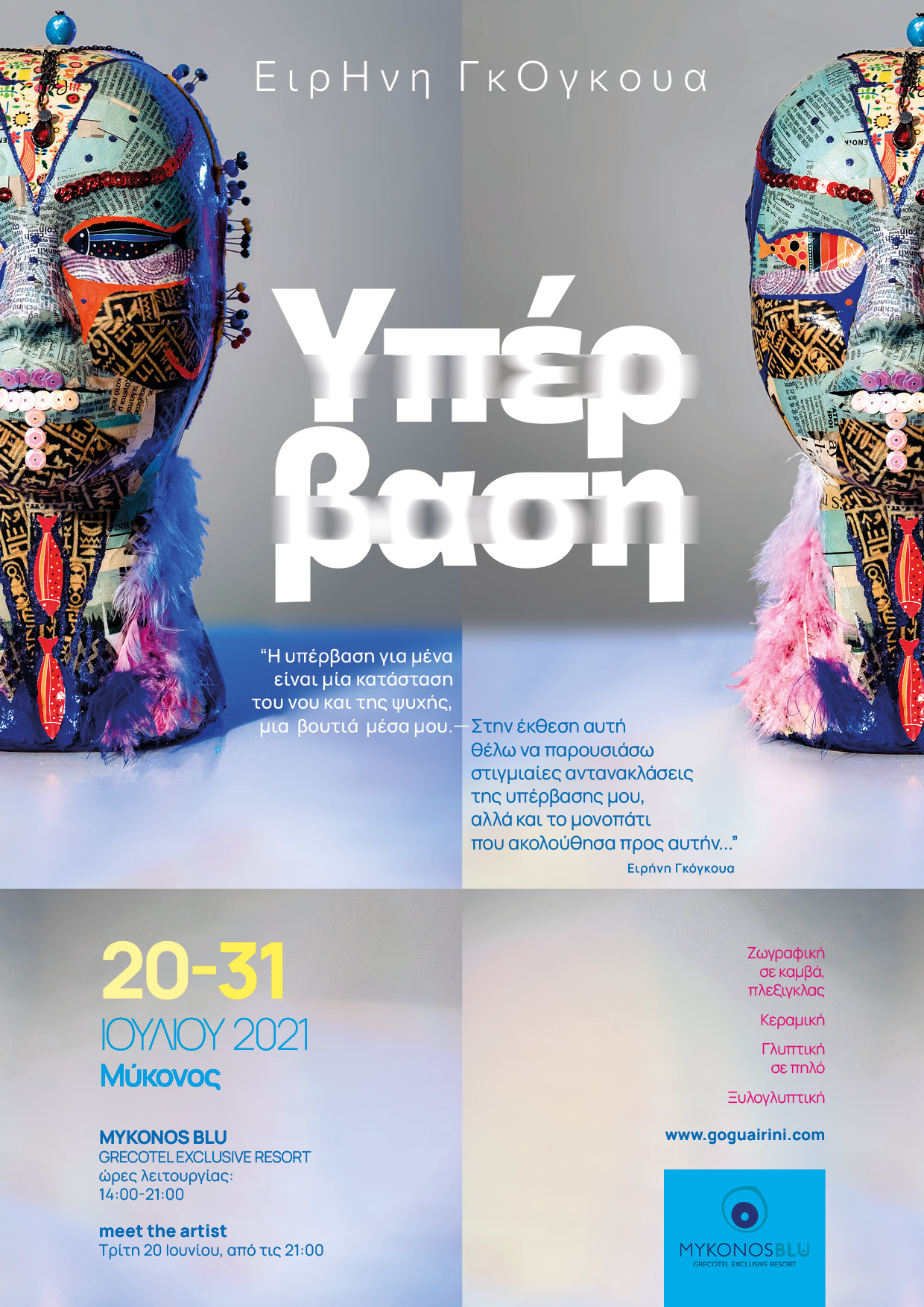 Μετά την επιτυχημένη έκθεση της εικαστικού στη Δημοτική Πινακοθήκη Μυκόνου «Μαρία Ιγγλέση», αίθουσα Ματογιάννη τον Ιούνιο και λόγω της αθρόας επισκεψιμότητας του κόσμου αλλά και των ιδιαιτέρως ένθερμων κριτικών, η κα. Ειρήνη Γκόγκουα αποδέχτηκε με χαρά την πρόταση του ξενοδοχείου Mykonos Blu Grecotel, ώστε να παραταθεί η διάρκεια της παρουσίασης των έργων της.
