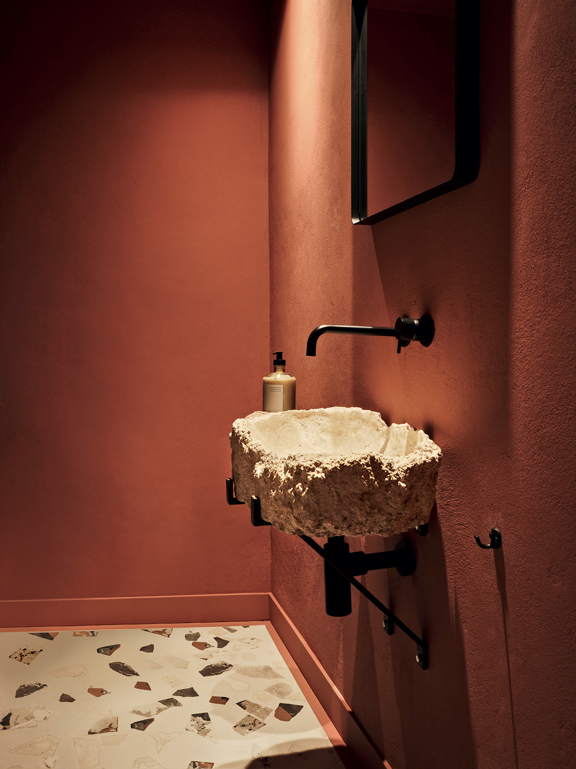 Μποέμ και πολυτελές, το μπάνιο πλάι στην κρεβατοκάμαρα, με έπιπλα, πλακάκια και μπαταρίες Moda Bagno, είναι ένας χώρος που φέρνει στο μυαλό το ταξίδι: περίτεχνα χαλιά, ξύλινες επιφάνειες κι ένα υφαντό σκαμνί φτιάχνουν μια εικόνα βγαλμένη από παραμύθι που διαδραματίζεται στην έρημο.