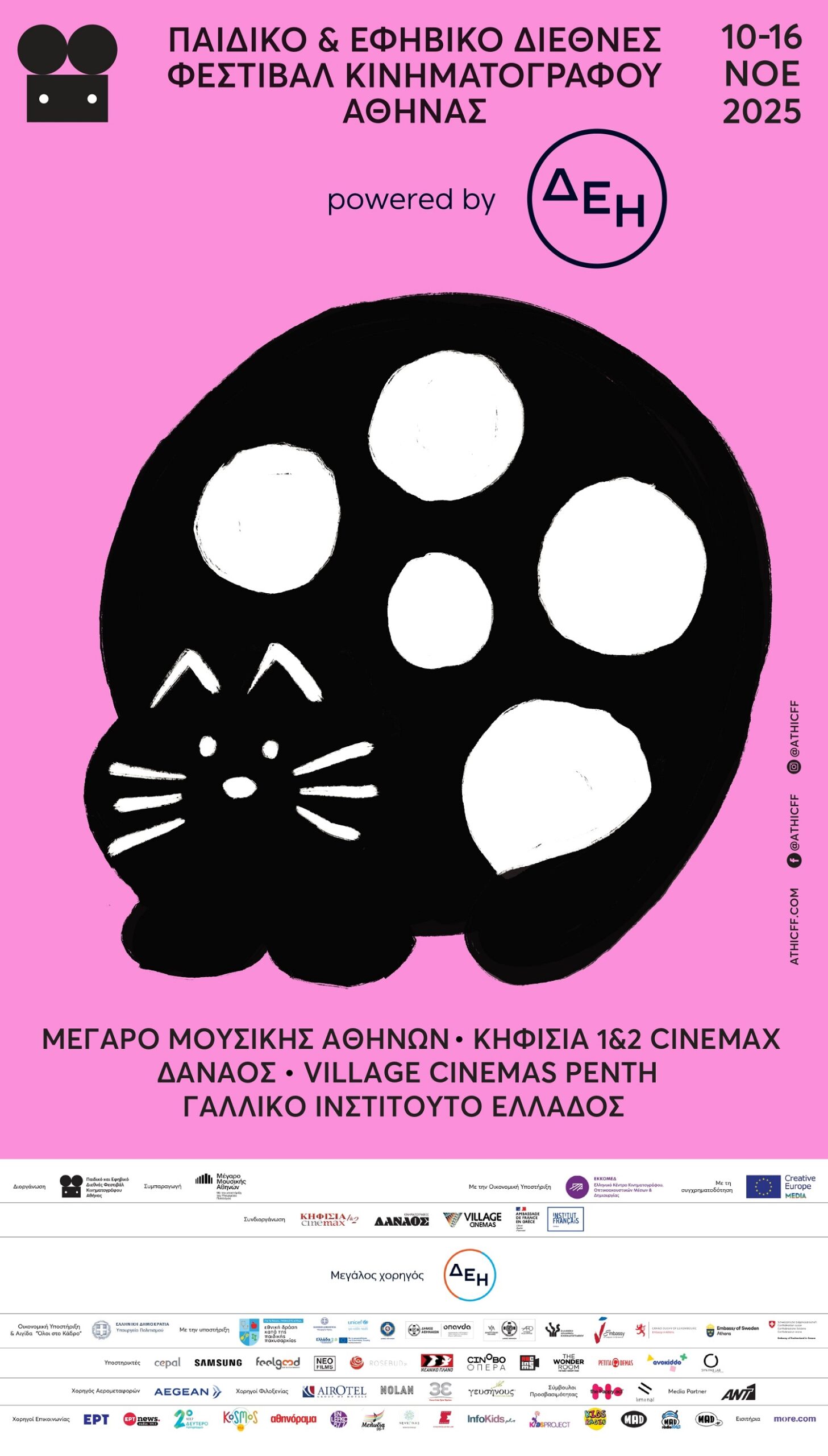 Το Παιδικό & Εφηβικό Διεθνές Φεστιβάλ Κινηματογράφου Αθήνας 2025 powered by ΔΕΗ επιστρέφει για 8η συνεχή χρονιά, στο Μέγαρο Μουσικής Αθηνών, τους κινηματογράφους Κηφισιά 1 & 2 Cinemax, Δαναός, Village Cinemas Ρέντη και το Γαλλικό Ινστιτούτο Ελλάδος. Γίνεται η φωνή των παιδιών και των εφήβων αντανακλώντας όλα όσα τους απασχολούν σήμερα – οικογενειακές σχέσεις, φιλίες, απώλειες, τα πρώτα σκιρτήματα της καρδιάς, ζητήματα ταυτότητας και αποδοχής, bullying και διαφορετικότητα.