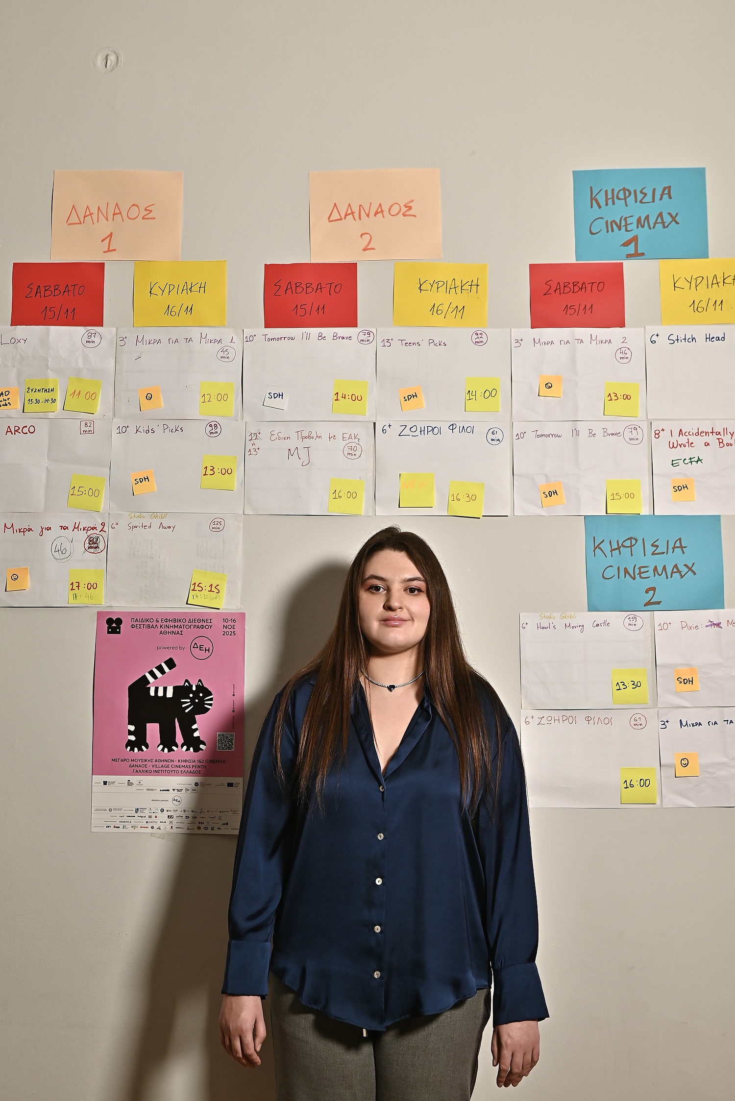 Στα γραφεία του Παιδικού & Εφηβικού Διεθνούς Φεστιβάλ Κινηματογράφου Αθήνας οι αφίσες του βρίσκονται τοποθετημένες ανάμεσα σε άπειρα, πολύχρωμα post-it στον τοίχο, που σηματοδοτούν ότι έχει ξεκινήσει η αντίστροφη μέτρηση για τη φετινή διοργάνωση (10-16/11), σε διάφορους χώρους της πόλης. Παρά τους φρενήρεις ρυθμούς δουλειάς της ομάδας του, η διευθύντριά του, Καλλιόπη Χαραλάμπους Κριέφ, βρίσκει χρόνο για να μας υποδεχτεί, μαζί με τον φωτογράφο, για μια συνέντευξη μαζί με την Άρια Παπανικολάου.