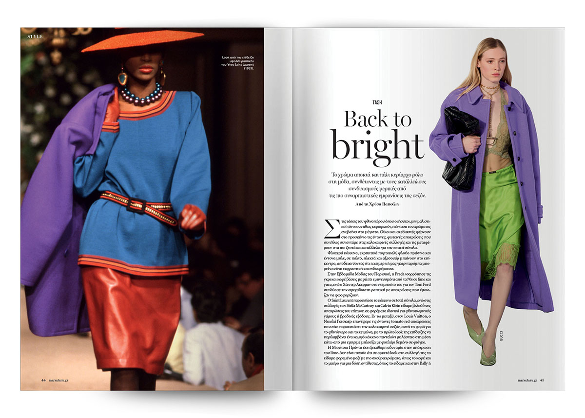 Η μόδα επιστρέφει στο χρώμα: back to bright, με τολμηρούς συνδυασμούς που υπόσχονται συναρπαστικές εμφανίσεις.