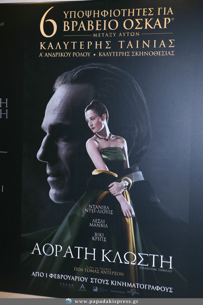 Όταν η Δάφνη Οικονόμου, πρόεδρος της Εταιρείας Προστασίας Σπαστικών/Πόρτα Ανοιχτή βγήκε στη σκηνή χθες βράδυ έβαλε τα πράγματα στην θέση τους. «Ο Ντάνιελ δεν είναι εδώ για μένα, ούτε καν για εσάς. Είναι για τα παιδιά», είπε ξεκάθαρα στο πλήθος από φιλότεχνους, φιλάνθρωπους αλλά και θαυμάστριες του Daniel Day Lewis, οι οποίες εκπροσωπούσαν τουλάχιστον τρεις γενιές -η πρώτη είναι της μητέρας μου που τη δεκαετία του 80 βγήκε από το σινεμά παραμιλώντας για αυτόν τον Άγγλο στο Ωραίο μου Πλυντήριο, η δεύτερη είναι η δική μου και μέτρησα και αρκετές έφηβες μέσα στην αίθουσα της Λυρικής Σκηνής στο Κέντρο Πολιτισμού Ίδρυμα Σταύρος Νιάρχος, οι οποίες προφανώς τώρα θα τον θυμούνται για πάντα ως Ρέινολντς Γούντκοκ στην Αόρατη Κλωστή του Πολ Τόμας Άντερσον.