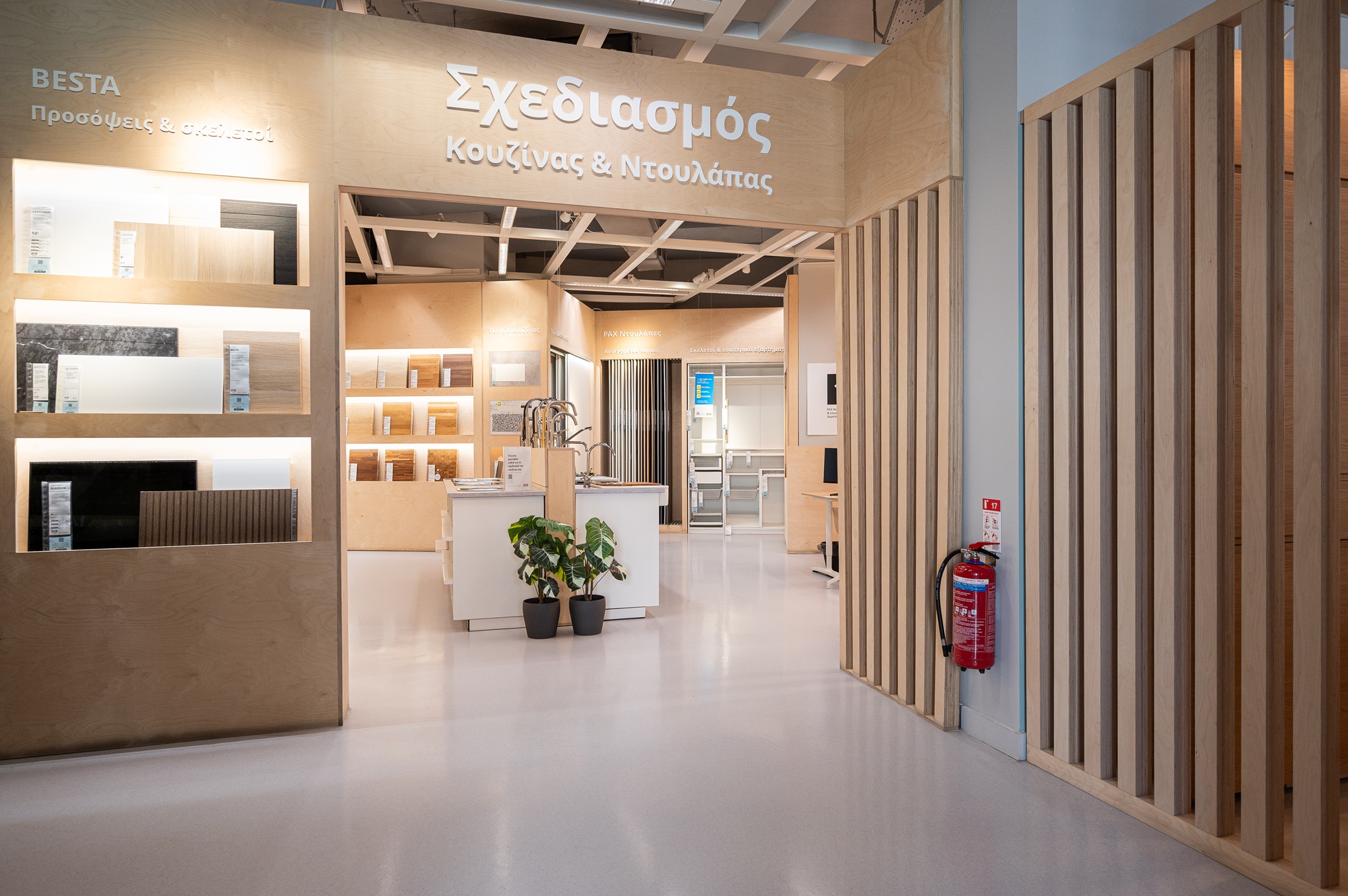 Ο δεύτερος όροφος αποτελεί την «καρδιά» του σχεδιασμού. Εκεί γνωρίσαμε από κοντά δείγματα METOD κουζινών, τραπέζια, καρέκλες και είδη σερβιρίσματος, ενώ το ανανεωμένο Κέντρο Σχεδιασμού επιτρέπει στους επισκέπτες να σχεδιάσουν METOD κουζίνες και PAX ντουλάπες με τη βοήθεια ειδικών συμβούλων. Τα δείγματα υλικών, πάγκων και προσόψεων δημιουργούν μια ολοκληρωμένη εικόνα για όσους ετοιμάζονται για μεγαλύτερες αλλαγές στο σπίτι τους.