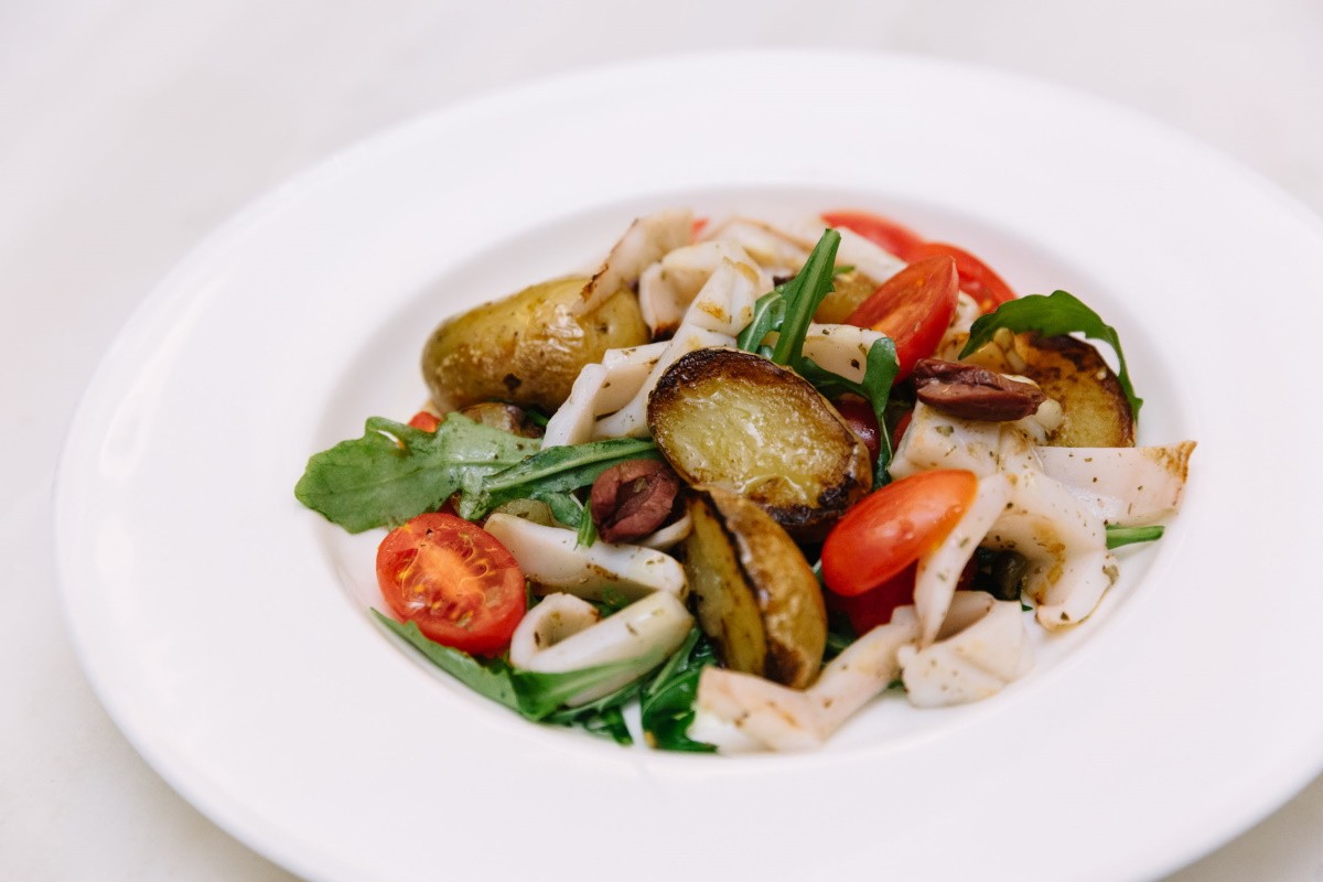 Στα ζεστά πιάτα κυριαρχούν οι συνταγές του Γιάννη Μπαξεβάνη, ξεχωρίζουν όμως επίσης τα χειροποίητα ραβιόλι μαϊντανόριζας, με γαρίδες και αρωματισμένη μπισκ με lime και η tagliata από μοσχάρι γάλακτος με ψητές baby πατάτες και άγρια μανιτάρια.