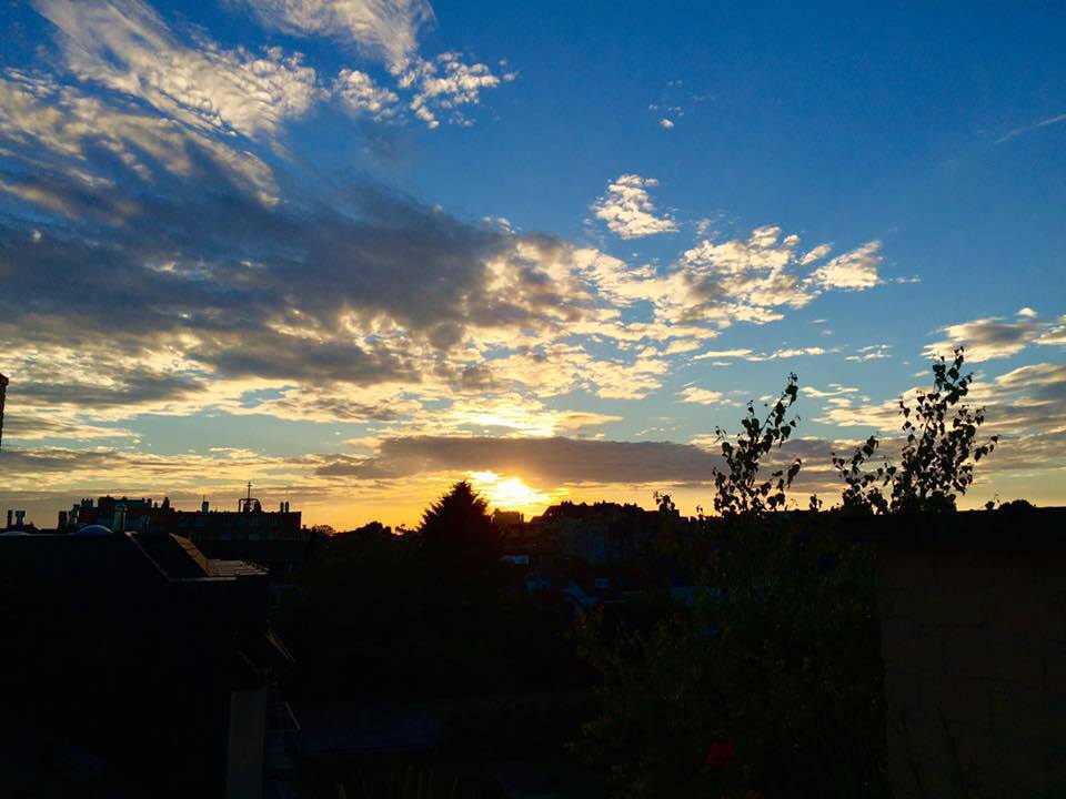 Τι όμορφη ερώτηση! .. Και θα μου επιτρέψετε να την χαρακτηρίσω τηλεπαθητική! (γέλιο)… Κι αυτό γιατί έχω μια φοβερή αδυναμία στους ουρανούς της γης εκείνη ακριβώς τη στιγμή! Τη στιγμή λίγο πριν νυχτώσει! Έχω καταναλώσει άπειρο χρόνο και φωτογραφικά φιλμ στον να φωτογραφίζω ουρανούς εκείνα ακριβώς τα λεπτά!.. Επί του παρόντος  κάνω κατάχρηση του γεγονότος ότι το διαμέρισμα που κατοικώ στα προάστεια των Βρυξελλών μου προσφέρει ανεμπόδιστη θέα στον ουρανό και τη δύση.  Κι αυτό που βλέπω συνήθως είναι το πόσο όμορφος μπορεί να είναι ο κόσμος μας χρωματισμένος από τα ηλιοβασιλέματα. Το πόσο όμορφη μπορεί να είναι η ζωή παρ’όλες τις αντιξοότητες, το ότι η φύση μας ανταμείβει καθημερινά με ομορφιά, την οποία συχνά αγνοούμε. Το ότι κι αν εκείνη τη στιγμή σκοτεινιάζει, η σκοτεινιά θα κρατήσει μόνο για μερικές ώρες, μέχρι να ξαναγεμίσει με φως η ζωή μας. Το φως μιας καινούργιας μέρας.