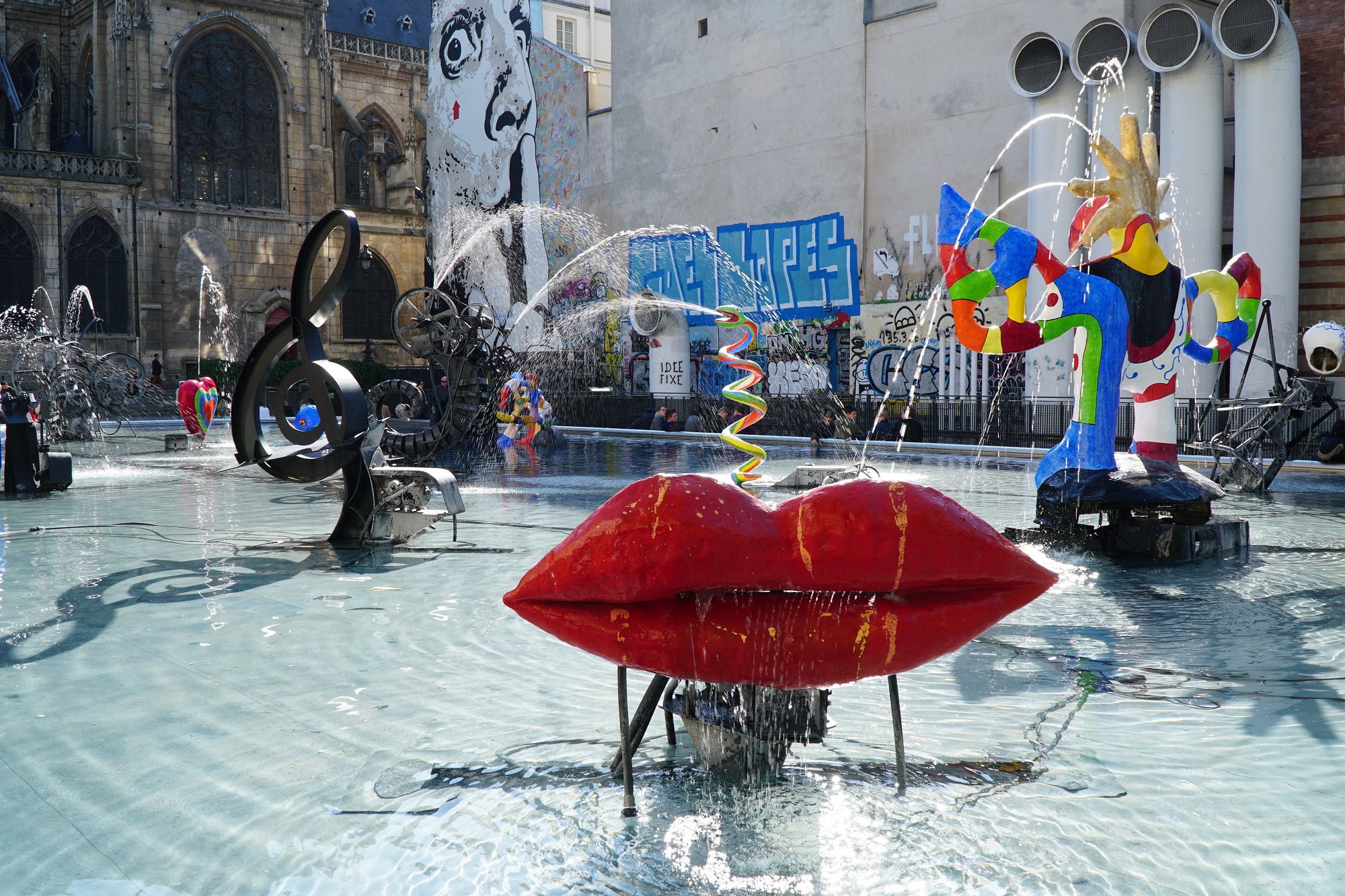 Η τέχνη στο δημόσιο χώρο ήταν ένα τεράστιο κεφάλαιο, που θα εμπλουτιζόταν μέχρι το τέλος της ζωής της, συχνά σε συνεργασία με τον Tinguely. «Ξέρουμε κυρίως το “Σιντριβάνι Stravinsky” μπροστά στο Κέντρο Pompidou, αλλά έχει κάνει και μια υπέροχη παιδική χαρά στην Ιερουσαλήμ, το “Golem” όπου, με τη βοήθεια του Tinguely, δημιούργησε τέρατα τα οποία αφήνουν όμορφα μηνύματα. Παραδείγματος χάρη ένα τέρας έχει τρεις γλώσσες, τις τσουλήθρες της παιδικής χαράς, που συμβολίζουν τις τρεις θρησκείες» λέει η κ. Κουτσομάλλη-Moreau.