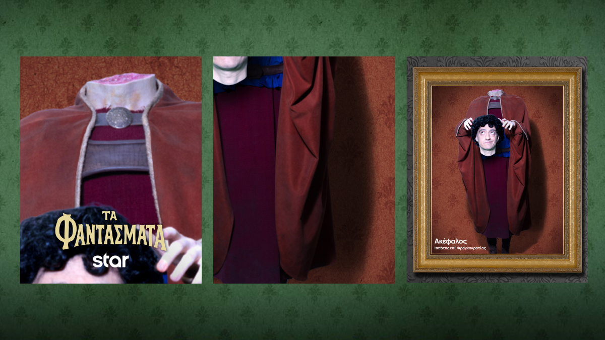 Το κοστούμι του Ακέφαλου: Μία ειδική κατασκευή εσωτερικά, όπου στη θέση του στέρνου βρίσκεται ξεχωριστά διαμορφωμένος χώρος που ανοιγοκλείνει, για να τοποθετηθεί το κεφάλι του ηθοποιού. Το ύφασμα στο συγκεκριμένο σημείο έχει αφαιρεθεί ίνα-ίνα, ώστε η ύφανση να είναι διάτρητη μεν, φυσική δε, και ο ηθοποιός να μπορεί να βλέπει και να αναπνέει.