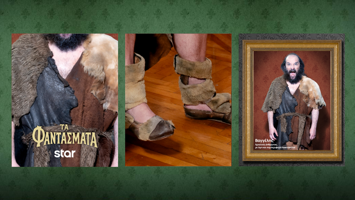 Το κοστούμι του Βαγγέλη: Συνδυάζει τέσσερα διαφορετικά δέρματα και τέσσερις διαφορετικές συνθετικές γούνες, που ενώθηκαν σε κοστούμι με την ειδική τεχνική μουλάζ: δηλαδή το ρούχο στήθηκε πάνω στον ηθοποιό, τα υφάσματα εφαρμόστηκαν πάνω στο σώμα του ένα προς ένα και κατόπιν ράφτηκαν. Ακόμη και τα παπούτσια του είναι απολύτως διαφορετικά και δημιουργημένα με την ίδια τεχνική, βασισμένα σε γουρουνοτσάρουχο.