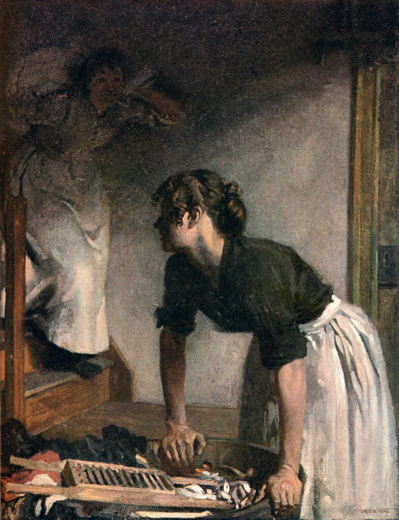 Ενα στενό ντιβάνι σε κάποια γωνιά. Ενα μικρό ντουλάπι. Ενα τριμμένο φουστάνι. Μια λευκή ποδιά. Απέραντη μοναξιά και δάκρυα.