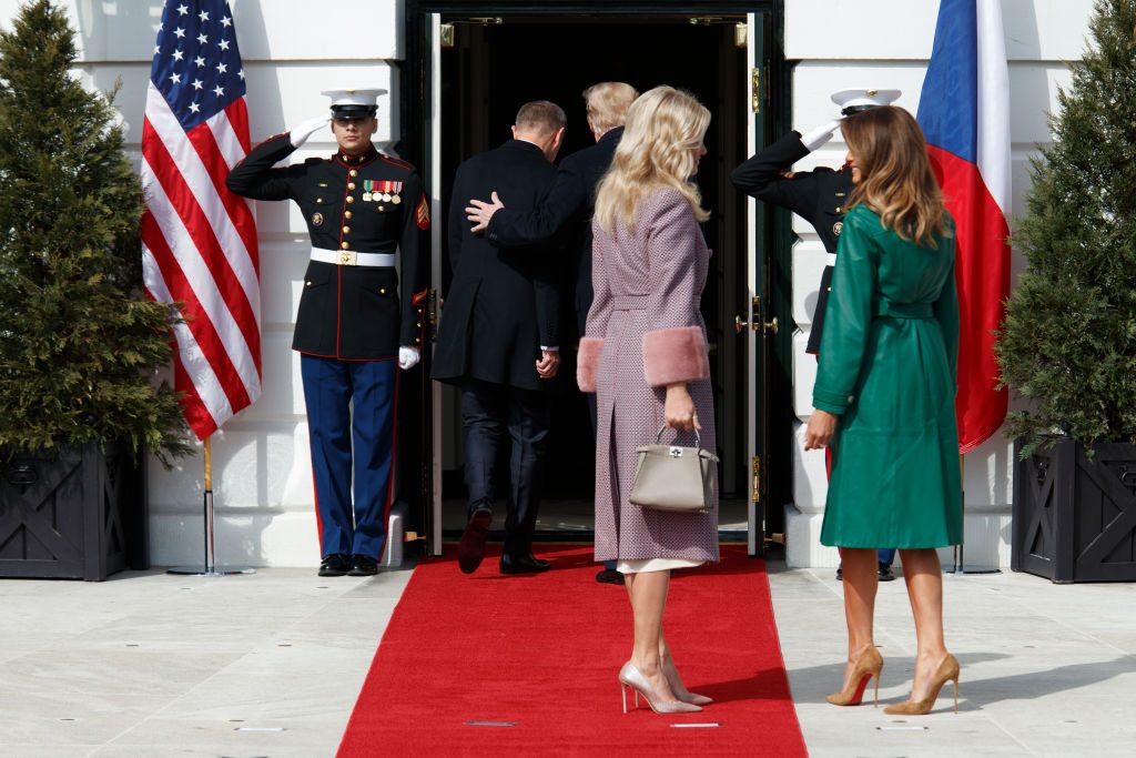 Monika Babišová (the wife of Czech Republic Prime Minister Andrej Babis) and Melania Trump shrug as Trump and the prime minister walk ahead of them into the White House. pic.twitter.com/ZD7FBpXl0r