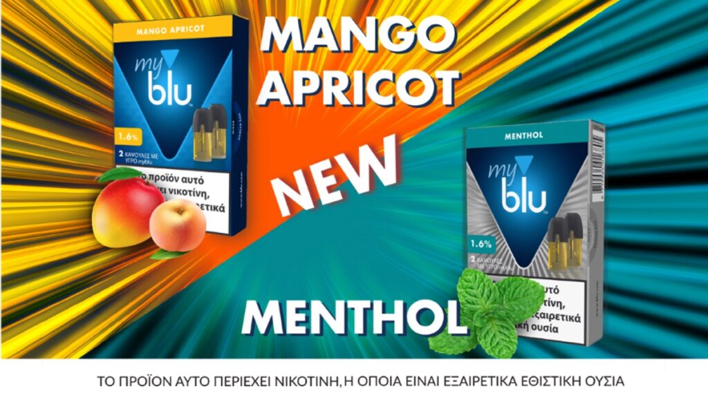 Το Προϊόν Νέας Γενιάς myblu, το 1ο σε προτιμήσεις ηλεκτρονικό τσιγάρο στη λιανική, ανταποδίδει την εμπιστοσύνη των καταναλωτών και υποδέχεται το καλοκαίρι με 2 νέες εντυπωσιακές προτάσεις γεύσεων: Menthol και Mango/Apricot.