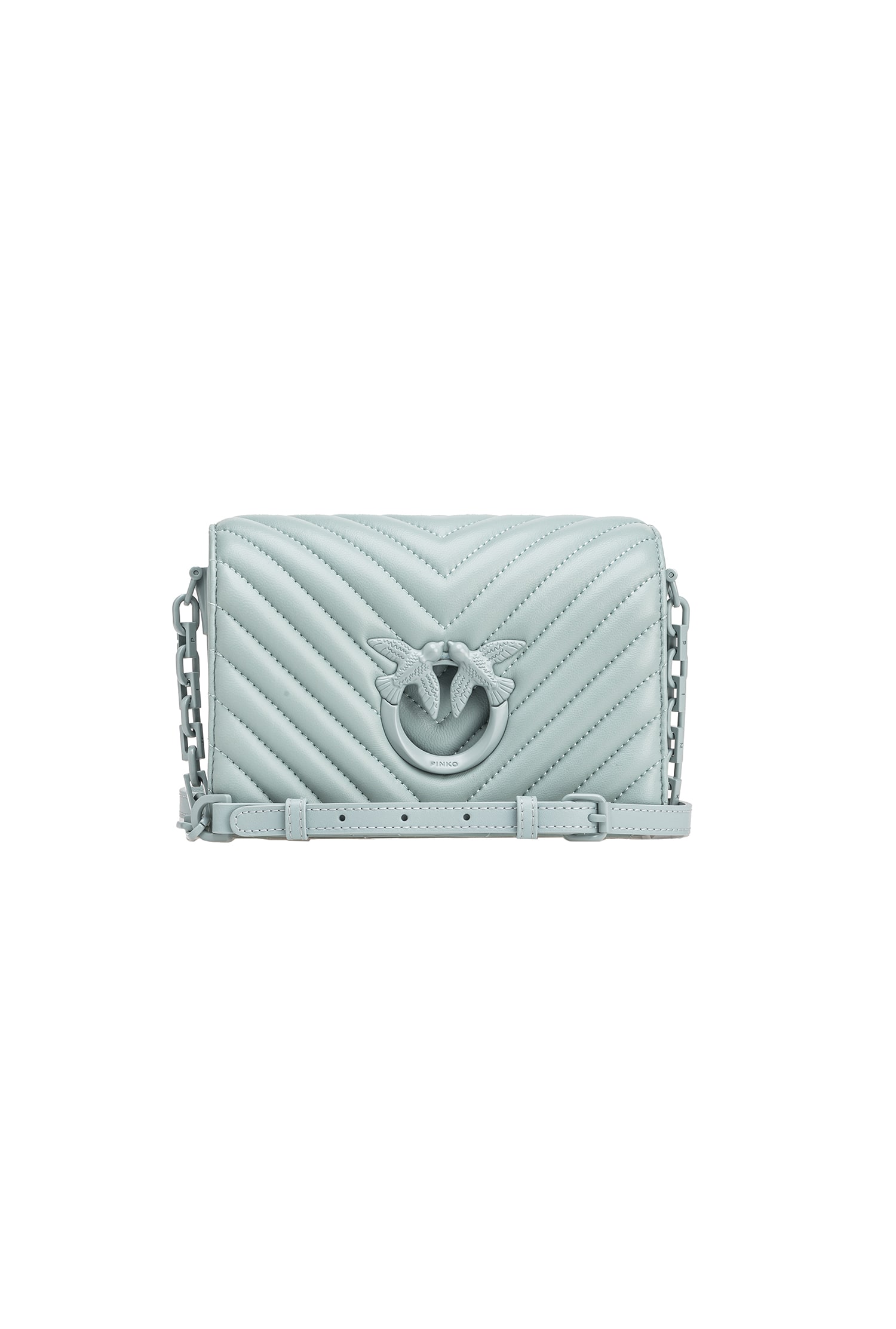 Η μέντα είναι μία χρωματική απόχρωση σχεδόν απόλυτα ταυτισμένη με την άνοιξη και τον ηλιόλουστο καιρό. Ακροβατεί στο παστέλ διάστημα ανάμεσα στο πράσινο και το μπλε και στην εκδοχή της Mini Love Bag Click γίνεται ιδανική για ξεχωριστές απογευματινές και βραδινές εμφανίσεις. Στο ίδιο χρώμα με το μαλακό δέρμα nappa με σχέδιο ζιγκ-ζαγκ είναι η μεταλλική αγκράφα Love Birds και το ρυθμιζόμενο λουρί της τσάντας, σε δέρμα και αλυσίδα. Ταιριάζει ιδανικά με ολόλευκα σύνολα, μπλε και καφέ, ειδικά στην εκδοχή της μόκας.