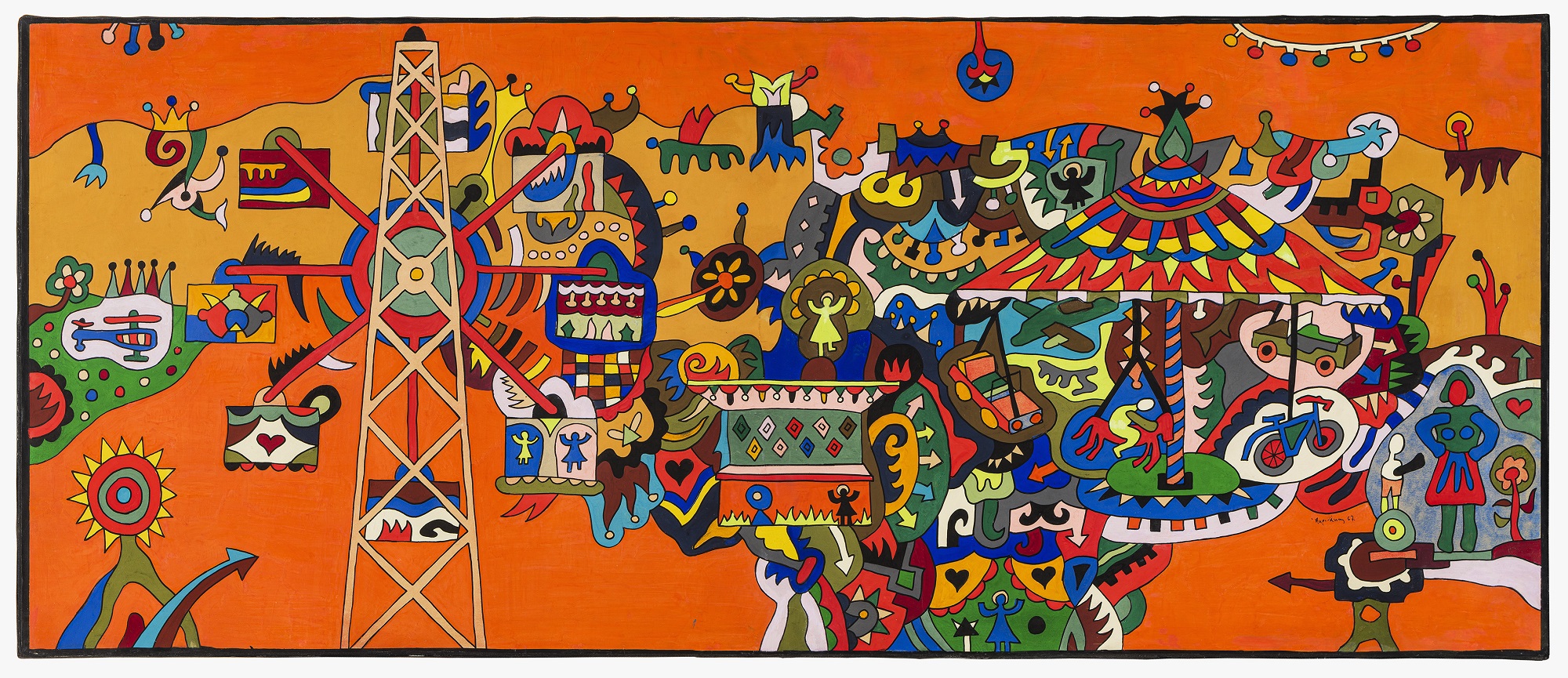 Παιδικά παιχνίδια έχουν μεταλλαχτεί από τη φρίκη του μίσους και του πολέμου, όπως το καρουζέλ για τα παιδιά του Βιετνάμ, όπου τα βαγονέτα έχουν αντικατασταθεί από φέρετρα. Ή όπως οι χάρτινες φιγούρες του κουκλοθέατρου που, αντί για νεράιδες και πριγκίπισσες, απεικονίζουν τους Χίτλερ, Φράνκο, Νίξον, Πομπιντού, Κουρτ Γκέοργκ Κίσινγκερ, Τζόνσον. Η εργογραφία ενός καλλιτέχνη τον οποίο άγγιζε βαθιά η πραγματικότητα κάθε κλίμακας, από τον εσωτερικό και οικογενειακό κόσμο του μέχρι τα παγκόσμια γεγονότα.