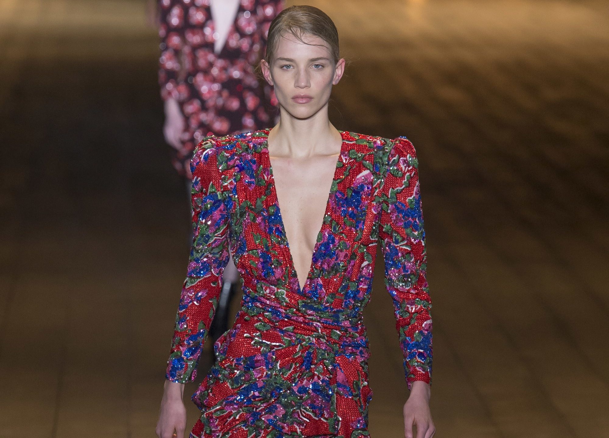 Φορέστε το δικό σας με μαύρο διαφανές καλσόν a la Saint Laurent, φωτεινό κόκκινο κραγιόν και ένα ζευγάρι λαμπερά σκουλαρίκια