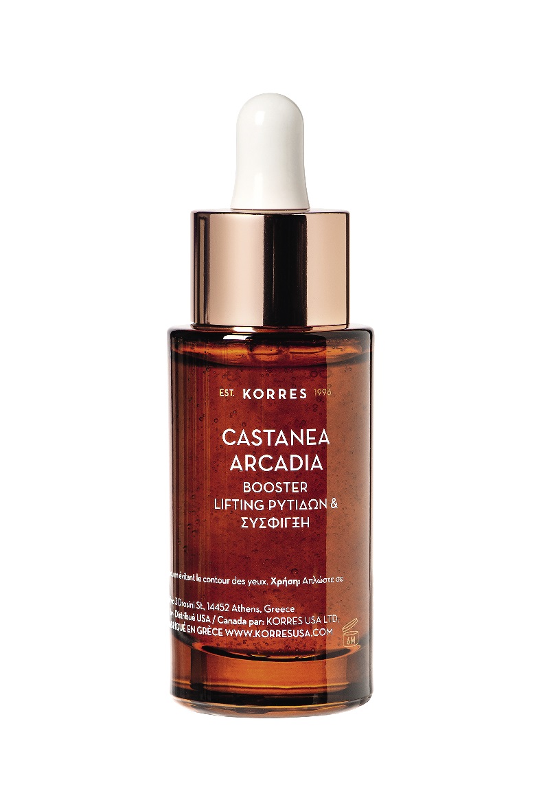 Μία από τις αγαπημένες μας σειρές της Korres. Και μία από τις αγαπημένες μας κατηγορίες προϊόντων. Το Booster Lifting Ρυτίδων και Σύσφιγξης της συλλογής Καστανιά Αρκαδική έχει μια δυνατή φόρμουλα με σύμπλεγμα HALupeol™ και υψηλή συγκέντρωση δραστικών (6 τύποι υαλουρονικού οξέος και ένα σύμπλεγμα 8 αμινοξέων). Λειαίνει, γεμίζει και μειώνει την εμφάνιση των ρυτίδων σε βάθος – πλάτος – επιφάνεια, ενώ συσφίγγει και ενυδατώνει την επιδερμίδα.