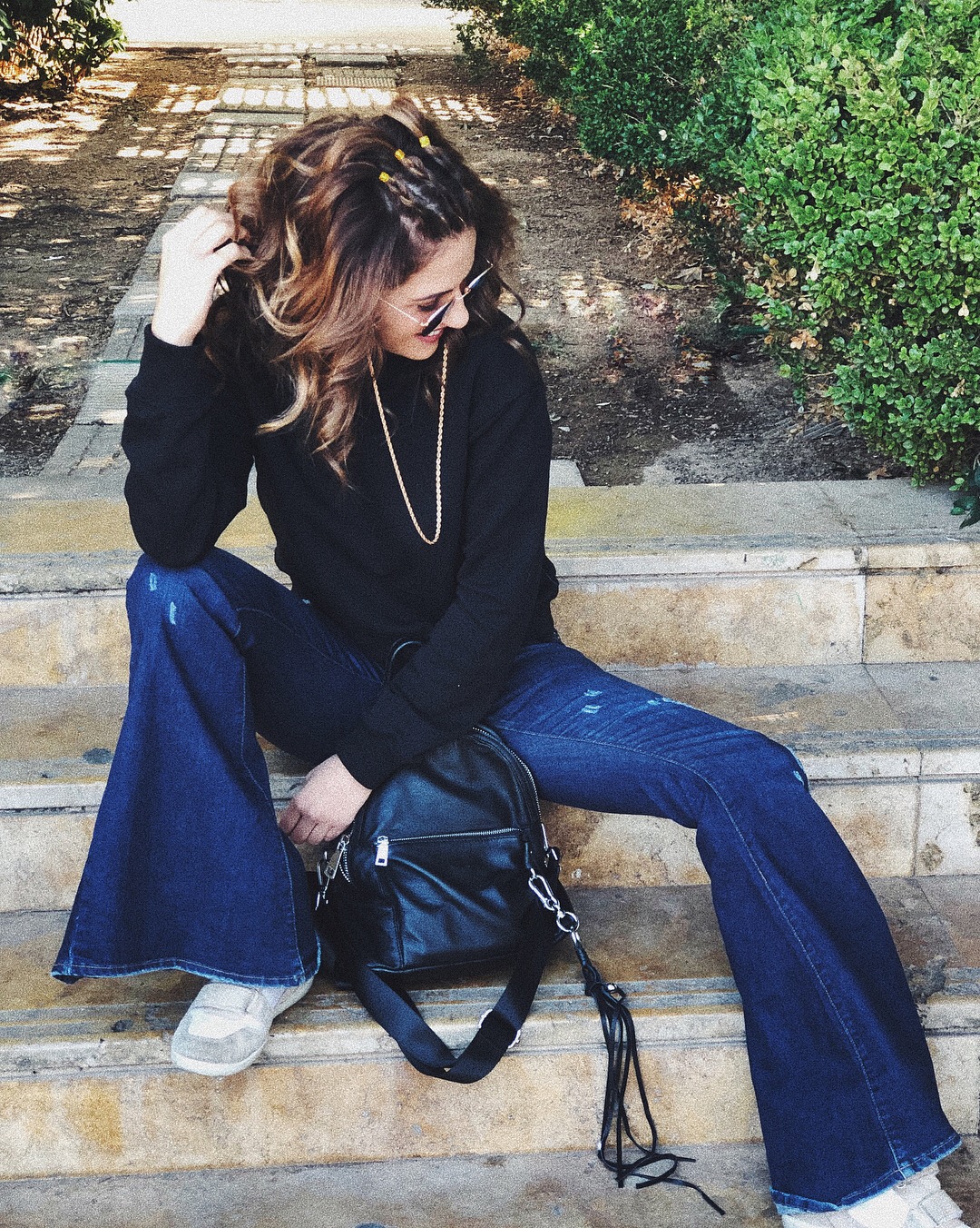 Αυτή τη φορά, φόρεσα τα hair cuffs επάνω στις πιο απλές, γαλλικές πλεξούδες! Συνδυάζοντας τα χρυσά αξεσουάρ μαλλιών μου με ένα χρυσό αξεσουάρ στο λαιμό, έδωσα μια glam πινελιά στο πιο απλό και casual σύνολο. That easy: