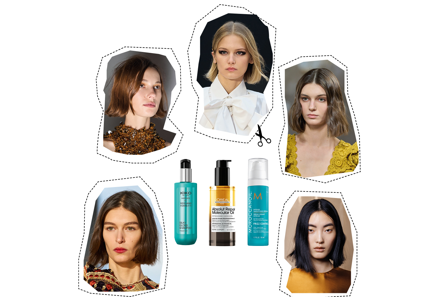 • Σαμπουάν για ίσια, απαλά και λαμπερά μαλλιά, Silky Gloss Shampoo, Kiko Milano • Διφασικό έλαιο για ενυδάτωση και έλεγχο του φριζαρίσματος, Absolut Repair Molecular Bi-Phase Oil, L‘Oréal Professionnel • Ορός για λάμψη και έλεγχο του φριζαρίσματος, Intense Smoothing Serum, Moroccanoil