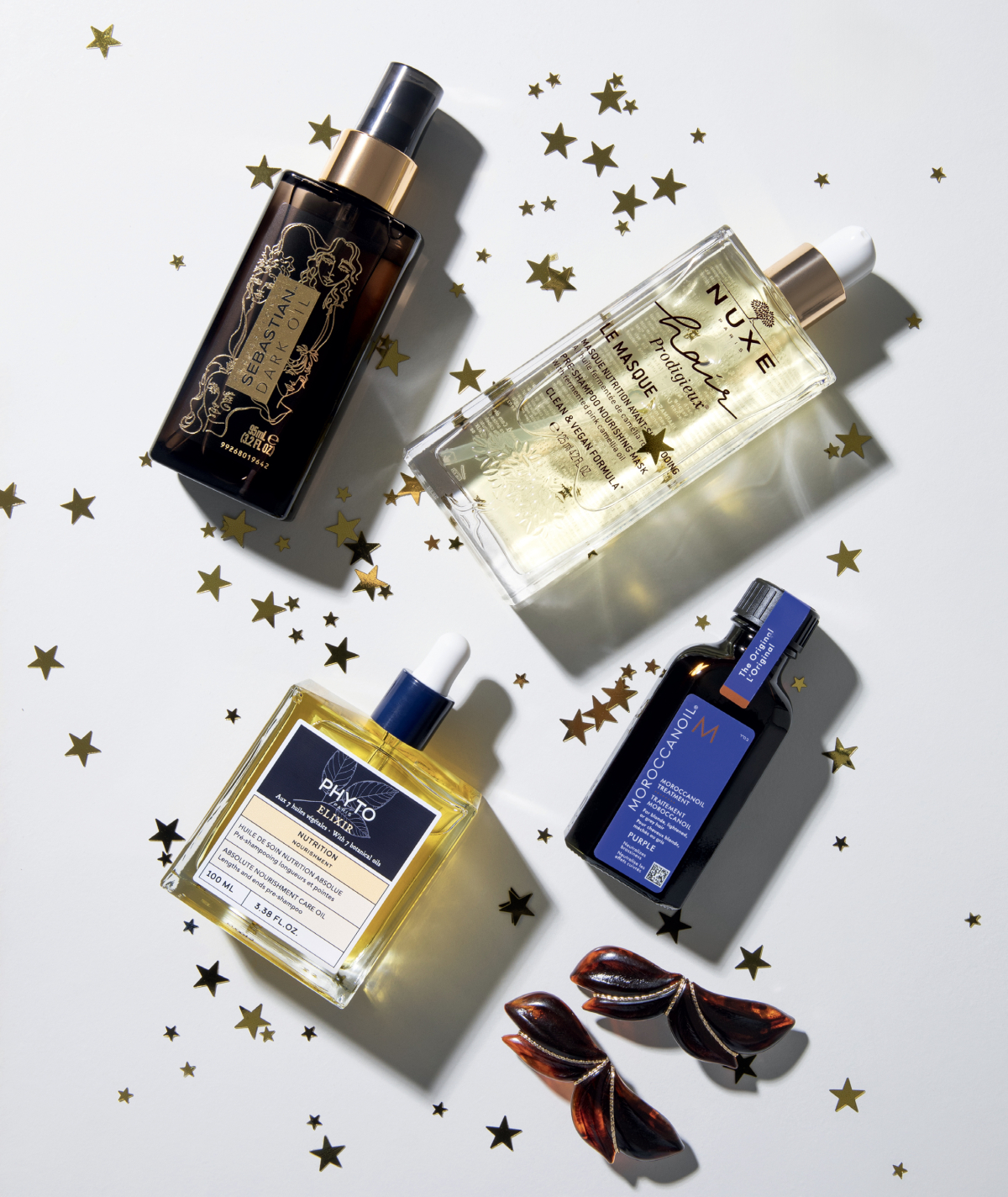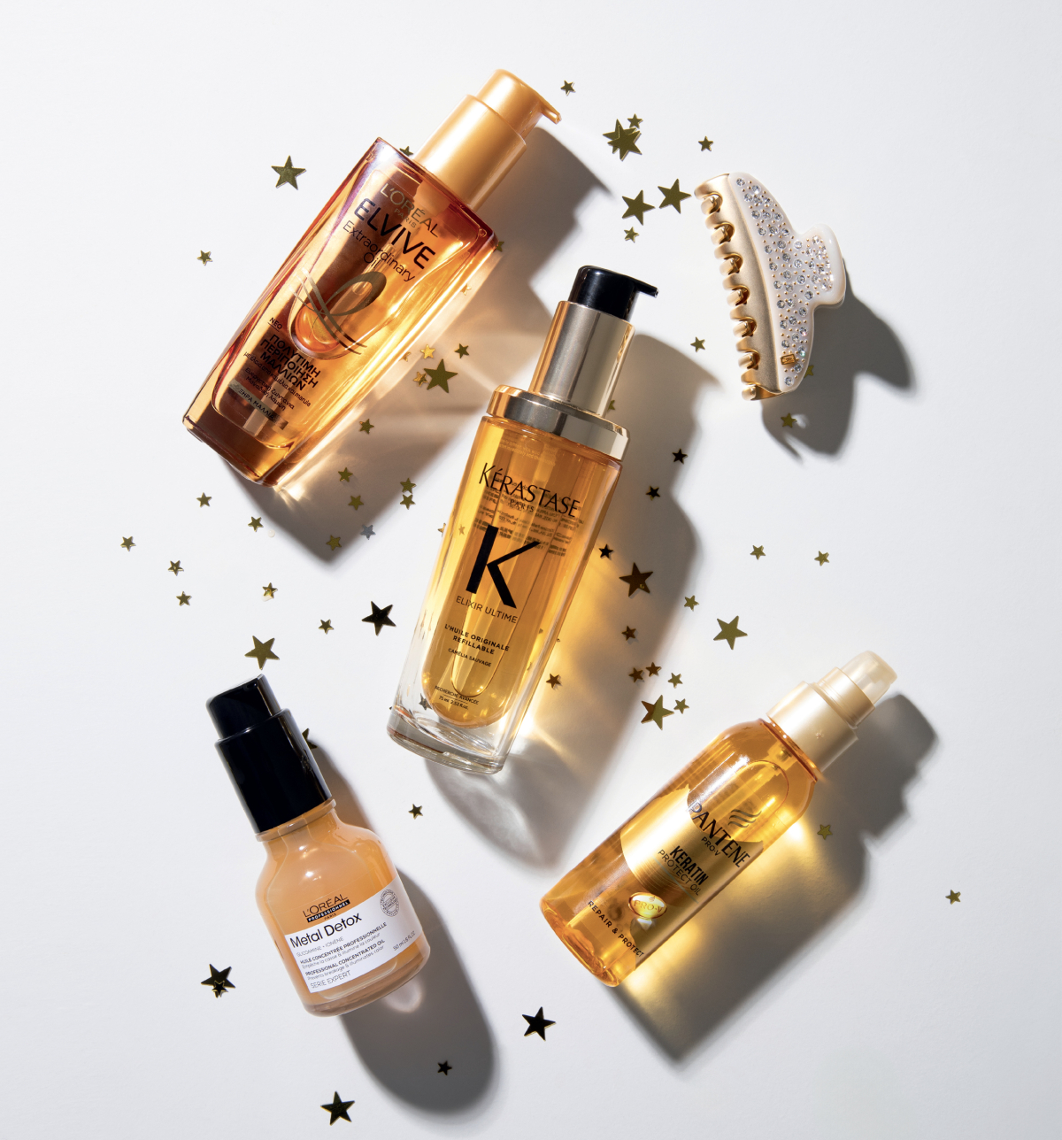 1.Έλαιο πολλαπλών χρήσεων για κάθε τύπο μαλλιών, Elvive Extraordinary Oil, L’Oréal Paris 2. Πολυχρηστικό έλαιο με refillable συσκευασία, L’Huile Originale Elixir Ultime, Kérastase 3. Κλάμερ μαλλιών, Pince Vendôme Éclat, Alexandre de Paris (Heaven on Earth) 4. Ξηρό λάδι θρέψης, Pantene Pro-V Keratin Protect Oil, Pantene 5. Συμπυκνωμένο λάδι μαλλιών κατά των μεταλλικών στοιχείων, Serie Expert Metal Detox Oil, L’Oréal Professionnel