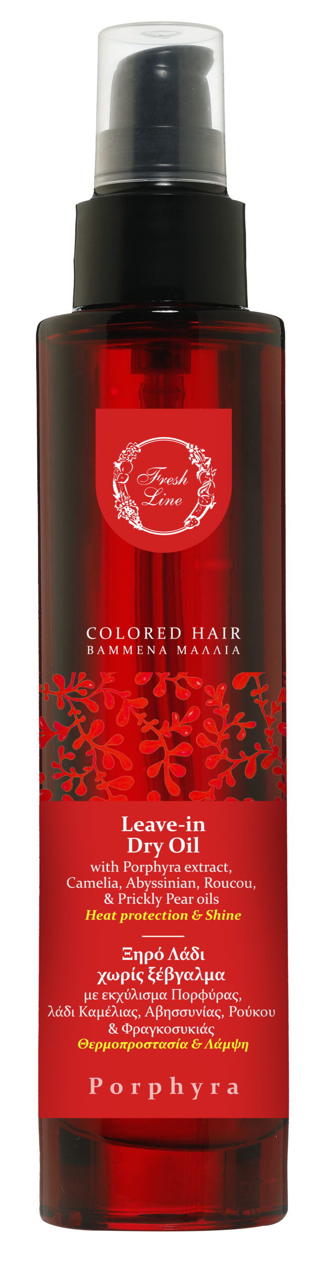 Τα βαμμένα μαλλιά έχουν περισσότερες ανάγκες από τα φυσικά και το ξηρό λάδι Πορφύρα της Fresh Line τις καλύπτει όλες. Πρόκειται για ένα πολυλειτουργικό λάδι που αναδομεί άμεσα τα ξηρά, ταλαιπωρημένα, φριζαρισμένα μαλλιά, ενώ διατηρεί λαμπερό το χρώμα τους. Απορροφάται γρήγορα και το ξεχωριστό εξωτικό του άρωμα αφήνει τα μαλλιά γλυκά και όμορφα αρωματισμένα.