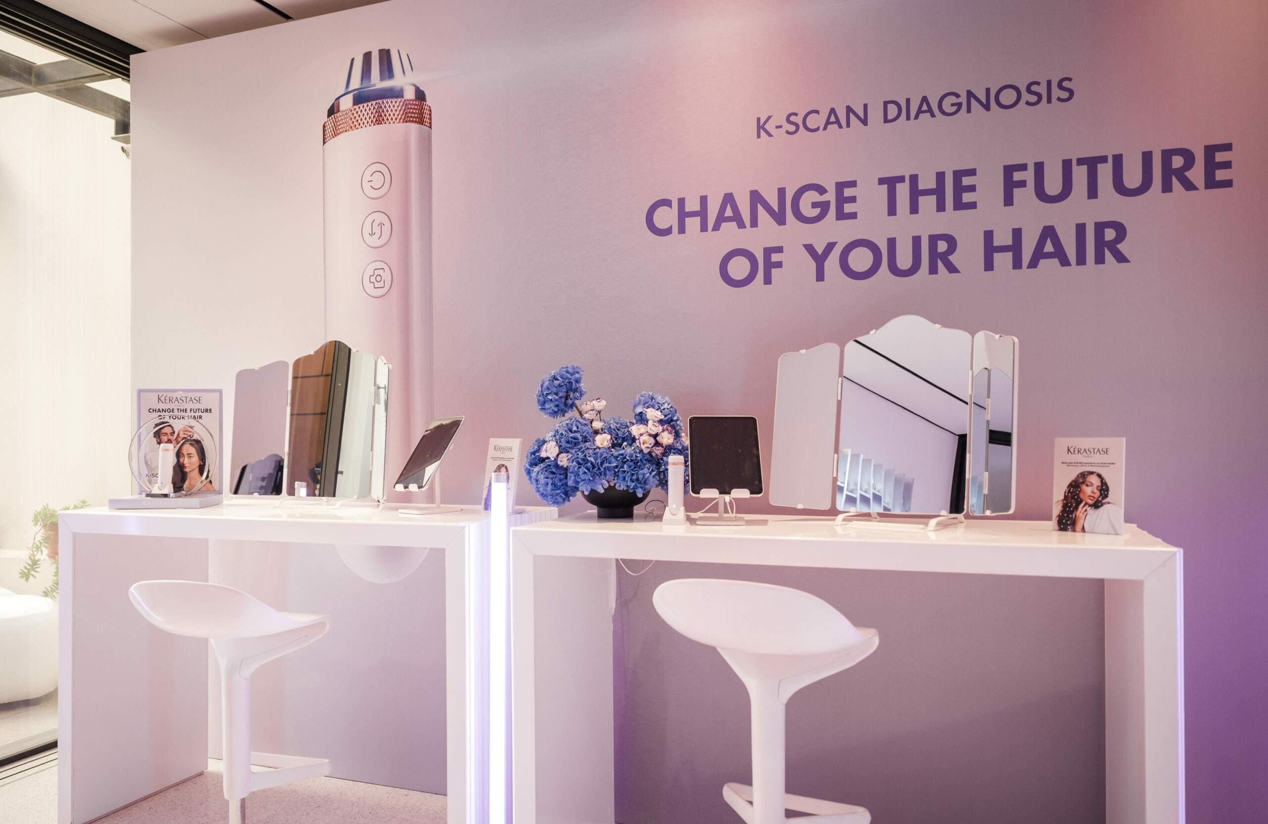 Παράλληλα όλοι οι καλεσμένοι μπορούσαν να επισκεφτούν το K-Scan Corner, στο οποία η ομάδα των Care Coaches της Kérastase τους υποδέχονταν για μια προσωποποιημένη διάγνωση με το K-Scan, το νέο καινοτόμο εργαλείο με τεχνολογία Τεχνητής Νοημοσύνης (AI), που προσφέρει εξατομικευμένες προτάσεις φροντίδας ανάλογα με τις ανάγκες των μαλλιών.