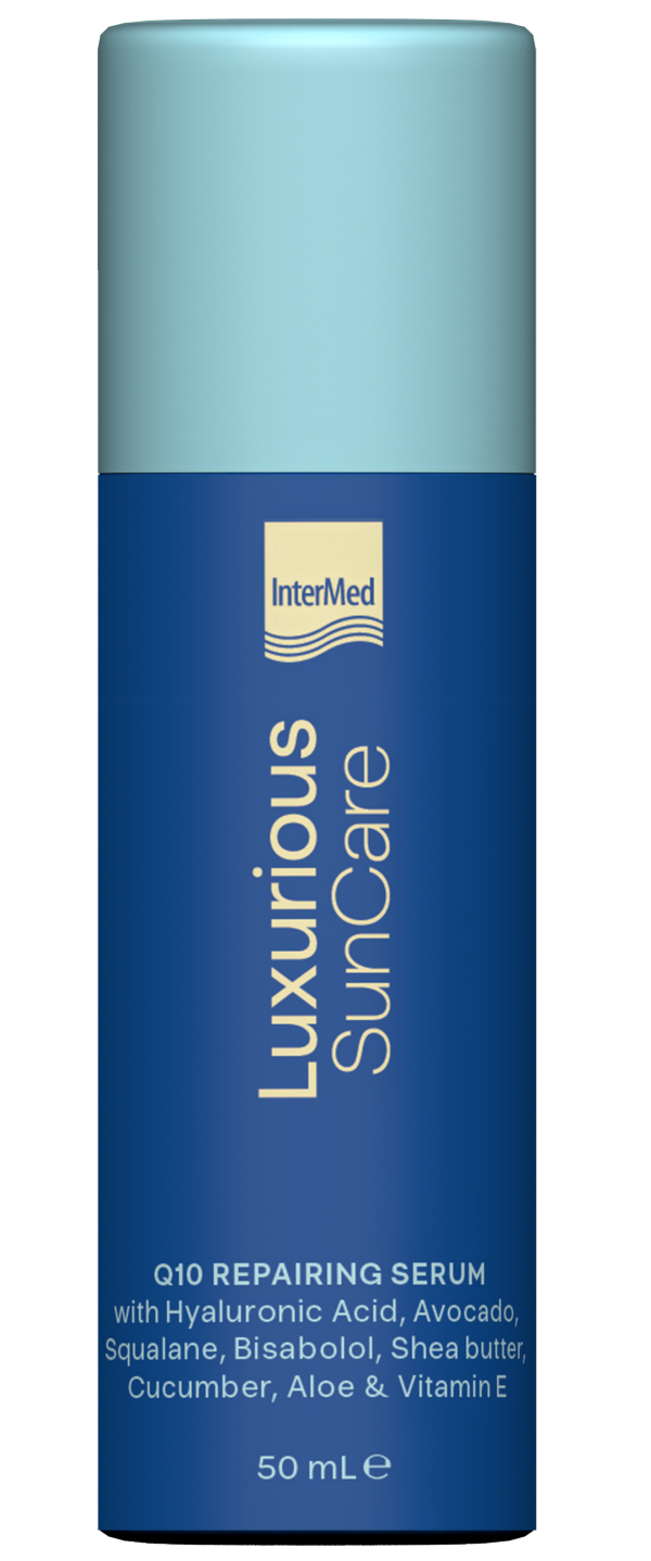 Οι αρνητικές συνέπειες της έκθεσης στον ήλιο για το δέρμα είναι ευρέως γνωστές και, εκτός από αντηλιακά προϊόντα, δεν πρέπει να ξεχνάμε τη φροντίδα που ακολουθεί στη συνέχεια. Ο ορός Luxurious SunCare Q10 Repairing Serum της InterMed επανορθώνει, ανακουφίζει και περιποιείται την επιδερμίδα χάρη στη μοναδική του σύνθεση με το συνένζυμο Q10, υαλουρονικό οξύ, βιταμίνη Ε, αγγούρι και αλόη.