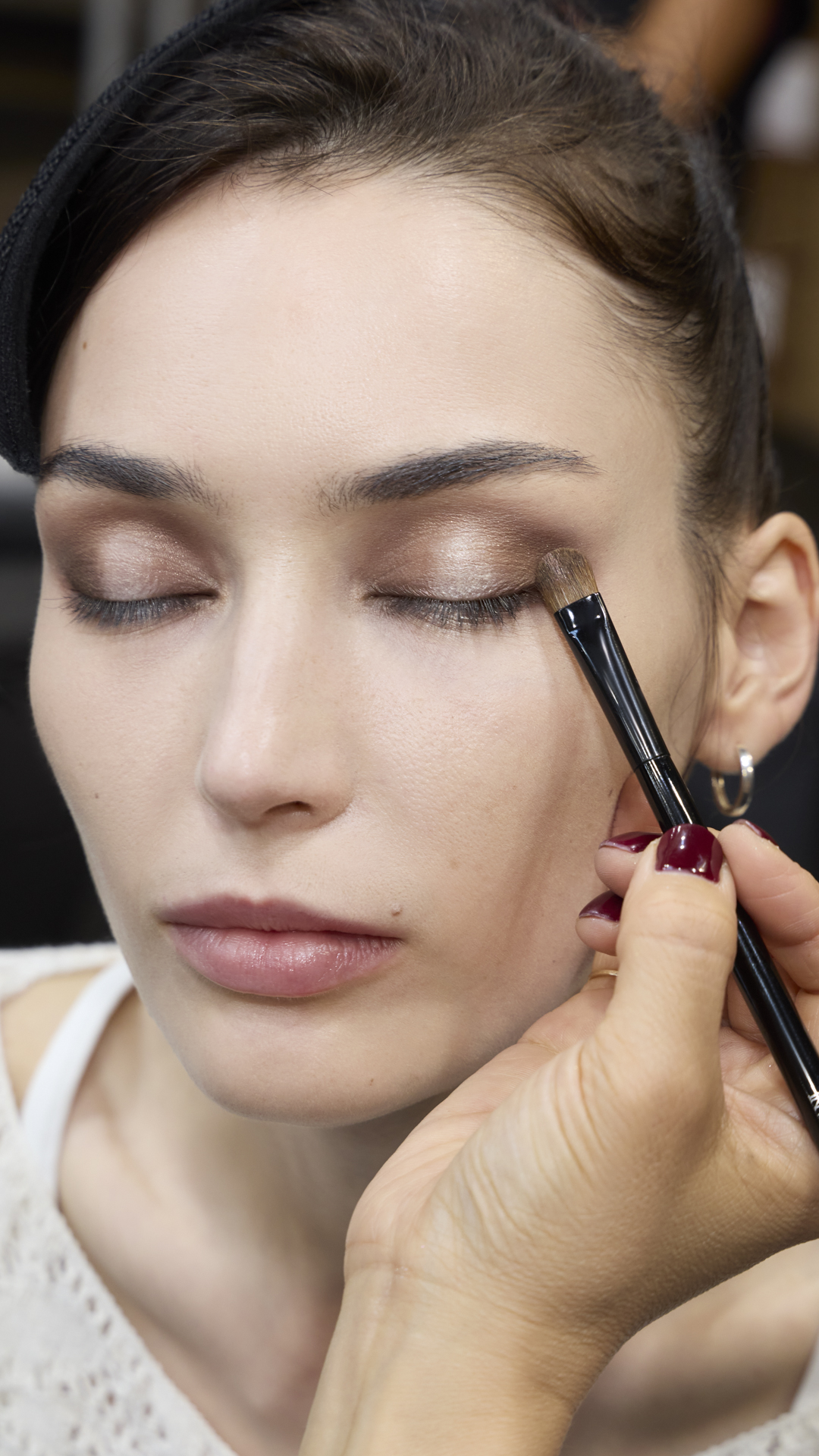 Στη συνέχεια εφαρμόζεται η EYES TO KILL STELLAR στην απόχρωση #2 στο κέντρο των βλεφάρων και κάτω από τη γραμμή των βλεφαρίδων, για να δημιουργηθεί ένα παιχνίδισμα με το φως. Οι βλεφαρίδες τονίζονται και αποκτούν όγκο με την EYES TO KILL MASCARA στην απόχρωση #1.