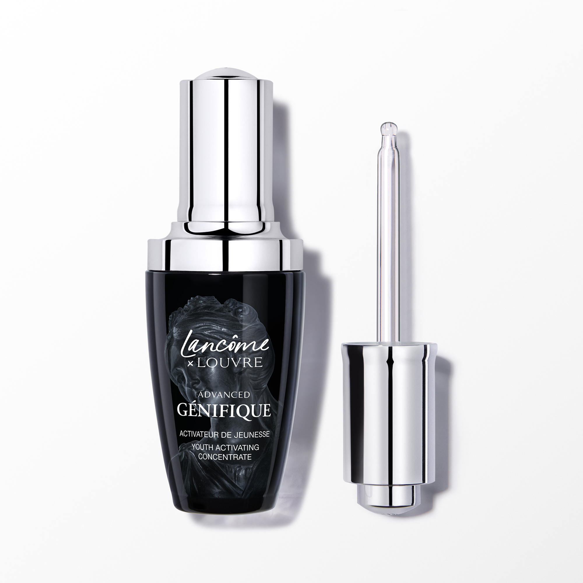 Ο εμβληματικός ορός της Lancôme Advanced Génifique Serum απέκτησε νέα εμφάνιση χάρη στη limited edition συλλογή Louvre X Lancôme. Στο μπουκάλι απεικονίζεται η θεά Υγεία (έργο του Γάλλου γλύπτη Jean-Baptiste II Lemoyne) να κρατά ένα κύπελλο, σύμβολο της Ιατρικής. Γύρω του περιστρέφεται το Φίδι της Σοφίας, το οποίο συμβολίζει την επούλωση και τη θεραπεία, όπως ακριβώς δηλαδή λειτουργεί και ο ορός για την επιδερμίδα.
