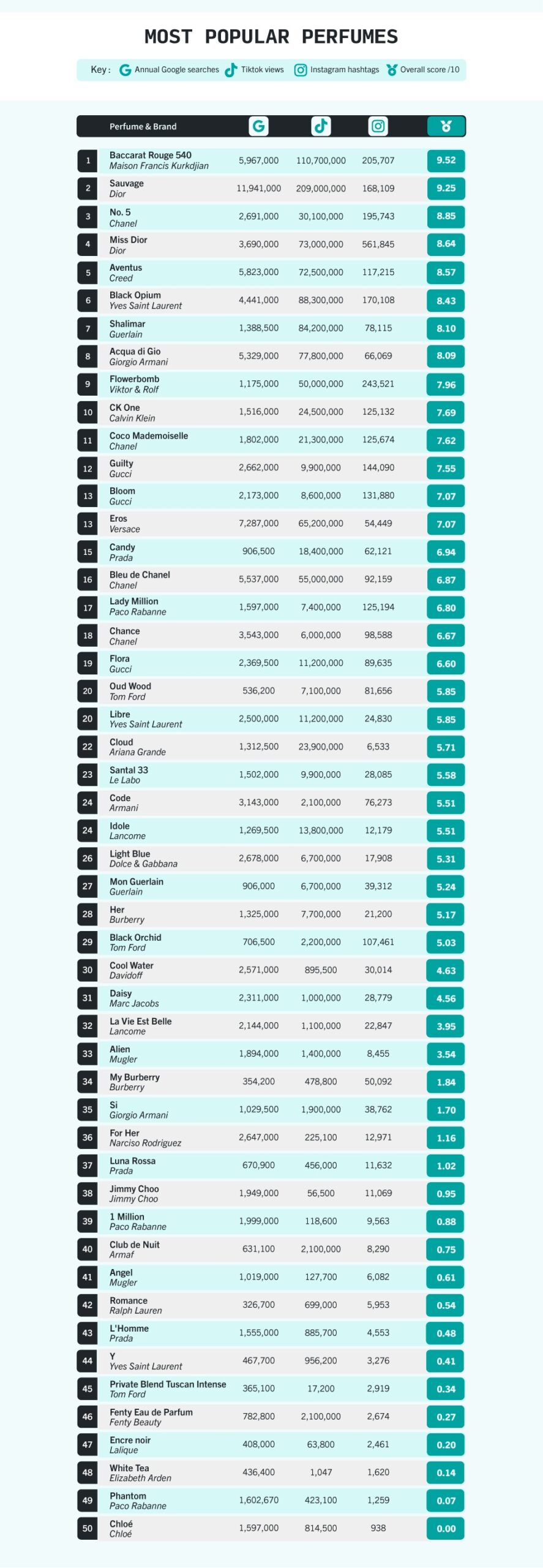 Σε περίπτωση όμως που όλες αυτές οι επιλογές σας μπερδεύουν, ίσως έχει έρθει η στιγμή να λάβετε τη βοήθεια του κοινού. Σύμφωνα με έρευνα που έγινε με βάση τις αναζητήσεις στο Google, τις προβολές στο TikTok και τα hashtags του Instagram, υπάρχουν συγκεκριμένα αρώματα που κέρδισαν στο αγώνα της δημοτικότητας μέσα στο 2022.