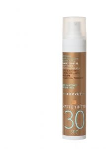 Για ματ αποτέλεσμα: H αντηλιακή κρέμα προσώπου με χρώμα Κόκκινο Σταφύλι της Korres έχει φανατικό κοινό καθώς προσφέρει υψηλή προστασία, δράση κατάτων πανάδων και των ρυτίδων και φυσική ματ κάλυψη. Τι καλύτερο;