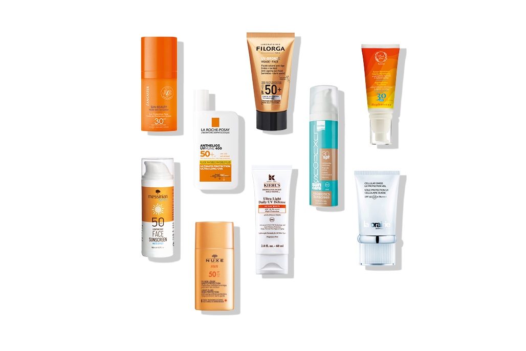 1. Αντηλιακό προσώπου με ελαφριά υφή που γίνεται ένα με το δέρμα, Sun Beauty Nude Skin Sensation Sun Protective Fluid SPF30, Lancaster 2. Αντηλιακό προσώπου με αόρατη ανάλαφρη υφή για προστασία ενάντια ακόμα και στις πιο επιβλαβείς ακτίνες UV, Anthelios UVMune 400 Invisible Fluid SPF50+, La Roche-Posay 3. Αντηλιακό προσώπου με δράση κατά των ρυτίδων και των πανάδων, UV Bronze Face SPF50, Filorga 4. Αντηλιακό προσώπου για ματ αποτέλεσμα, Lightweight Face Sunscreen Matte Effect SPF50, Messinian Spa 5. Λεπτόρρευστο αντηλιακό προσώπου για κανονικές-μεικτές επιδερμίδες, Light Fluid High Protection SPF50, Nuxe 6. Λεπτόρρευστη αντηλιακή κρέμα με δράση κατά της ρύπανσης, Ultra Light Daily UV Defense SPF50, Kiehl’s 7. Αντηλιακό γαλάκτωμα προσώπου με προβιοτικά που διατηρούν το μικροβίωμα σε ισορροπία, Luxurious Suncare Probiotics Sunscreen SPF30, InterΜed 8. Eλαφριά κρέμα καθημερινής αντηλιακής προστασίας Cellular Swiss UV Protection Veil SPF50, La Prairie 9. Κρέμα προσώπου υψηλής προστασίας, Hephaestus High Protection Face Cream SPF30, Fresh Line